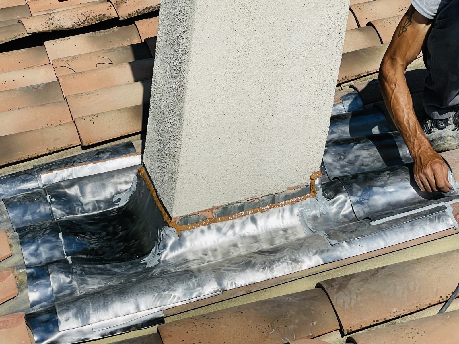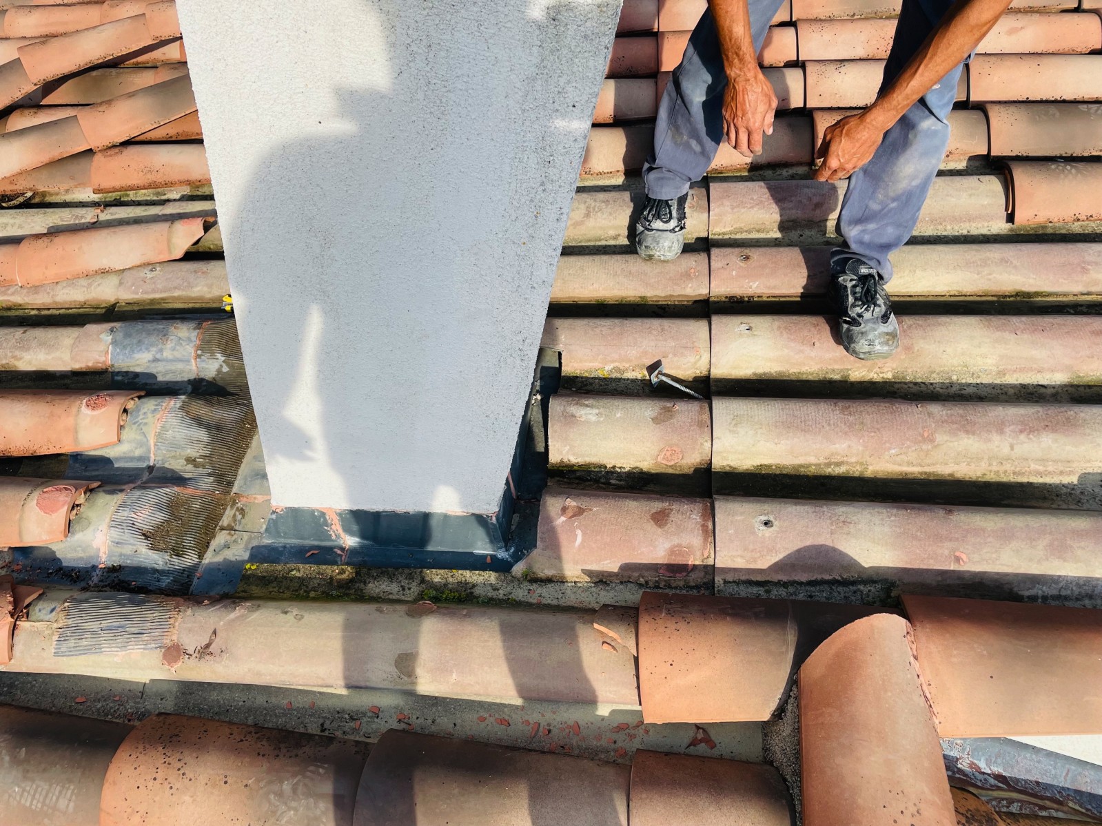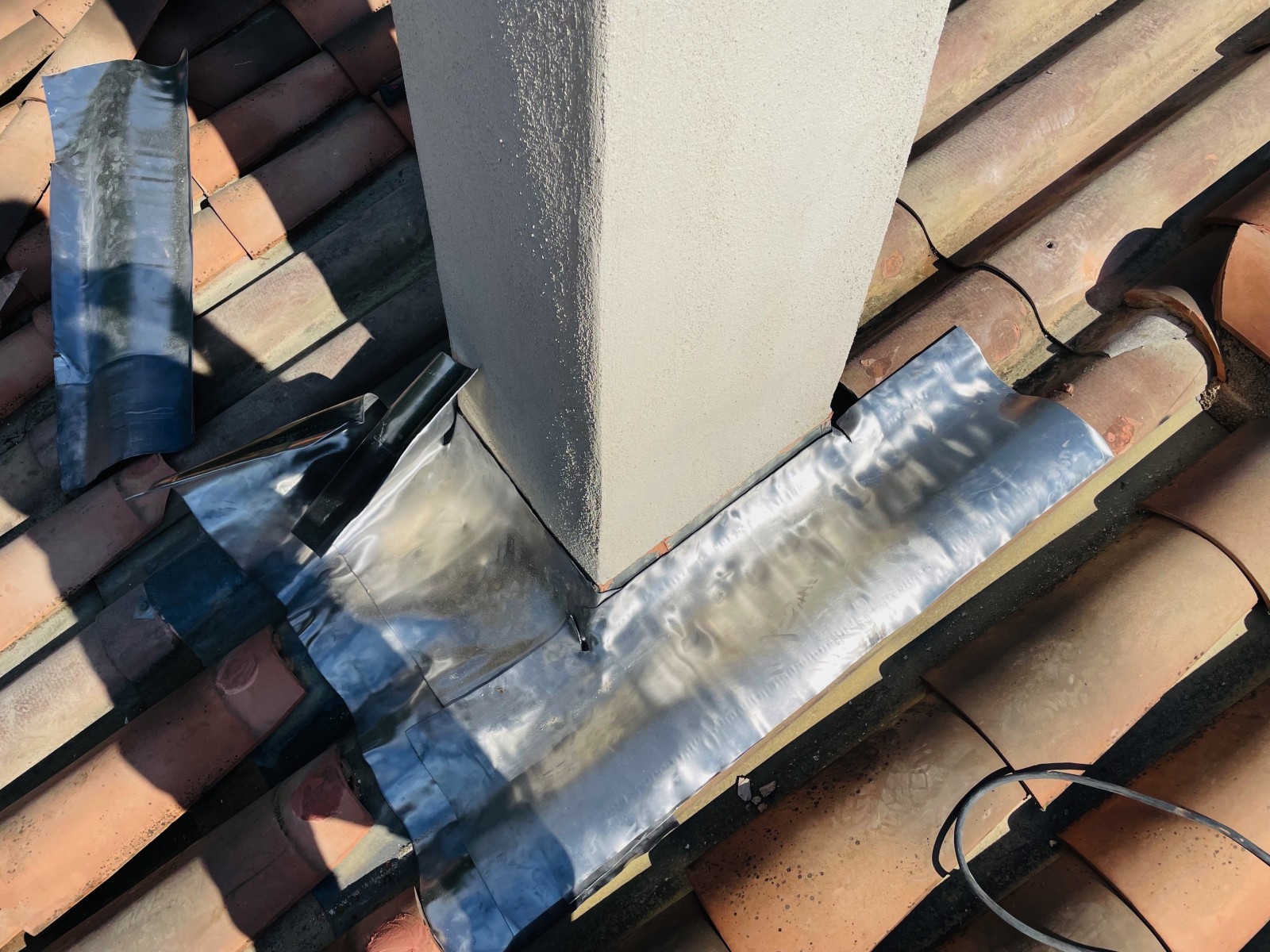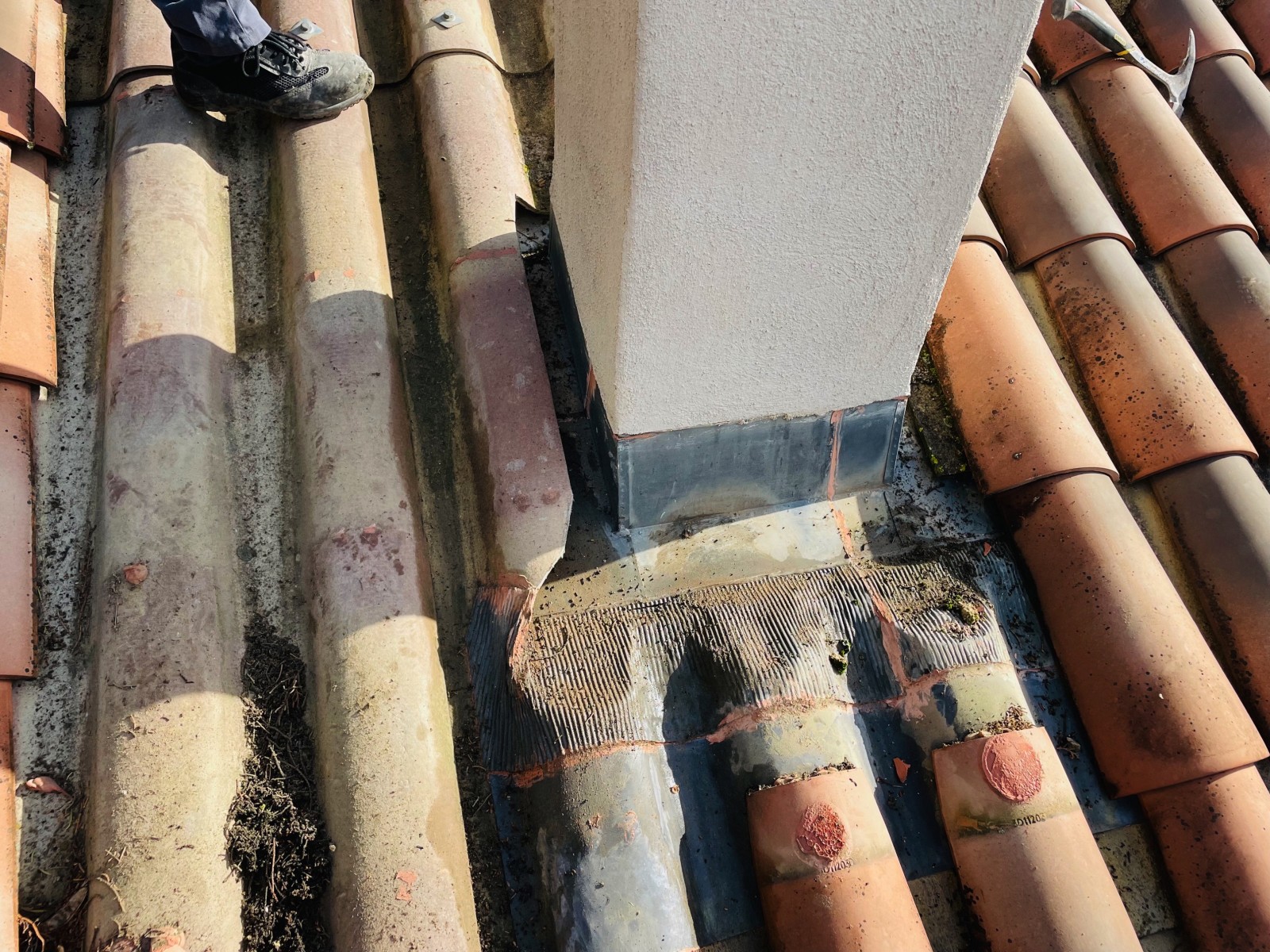 Solutoiture, votre partenaire en nettoyage et rénovation de toiture, vous présente ici une intervention de réfection d'un tour de cheminée en Plomb sur Vitrolles 13127.