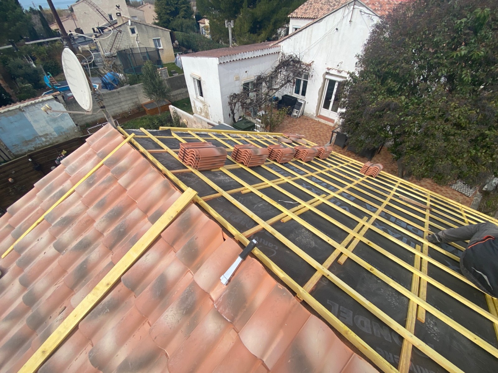 Solutoiture votre partenaire en rénovation de toiture et changement de couverture avec isolation vous présente un chantier de changement de toiture sur Saint-victoret 13730 près de Marignane.