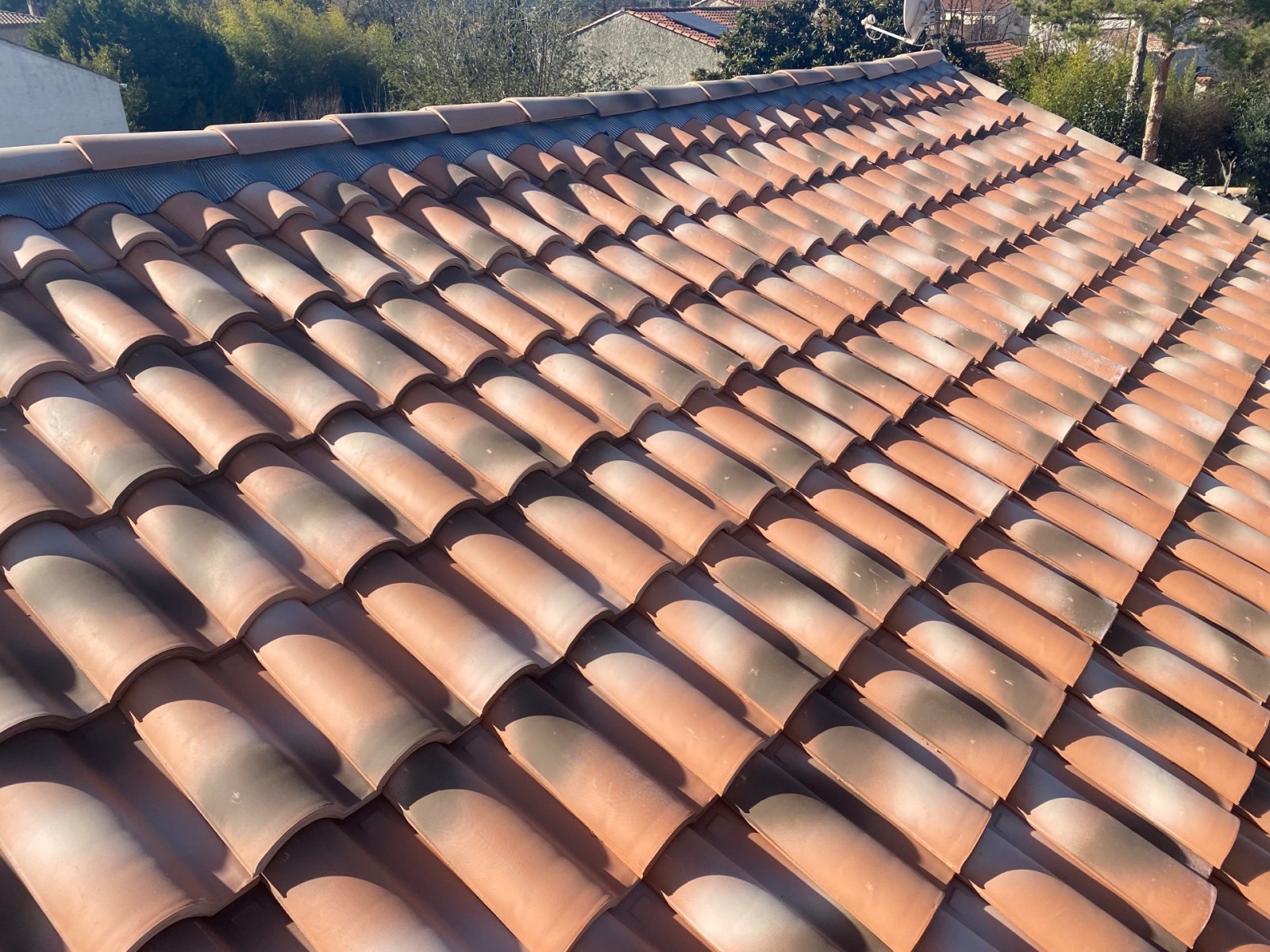 Il s’agit ici d’une toiture en tuile mécanique plate de Marseille.