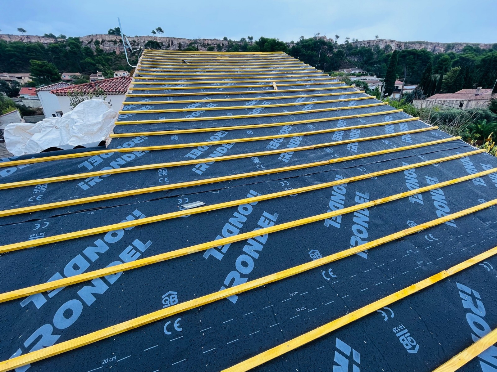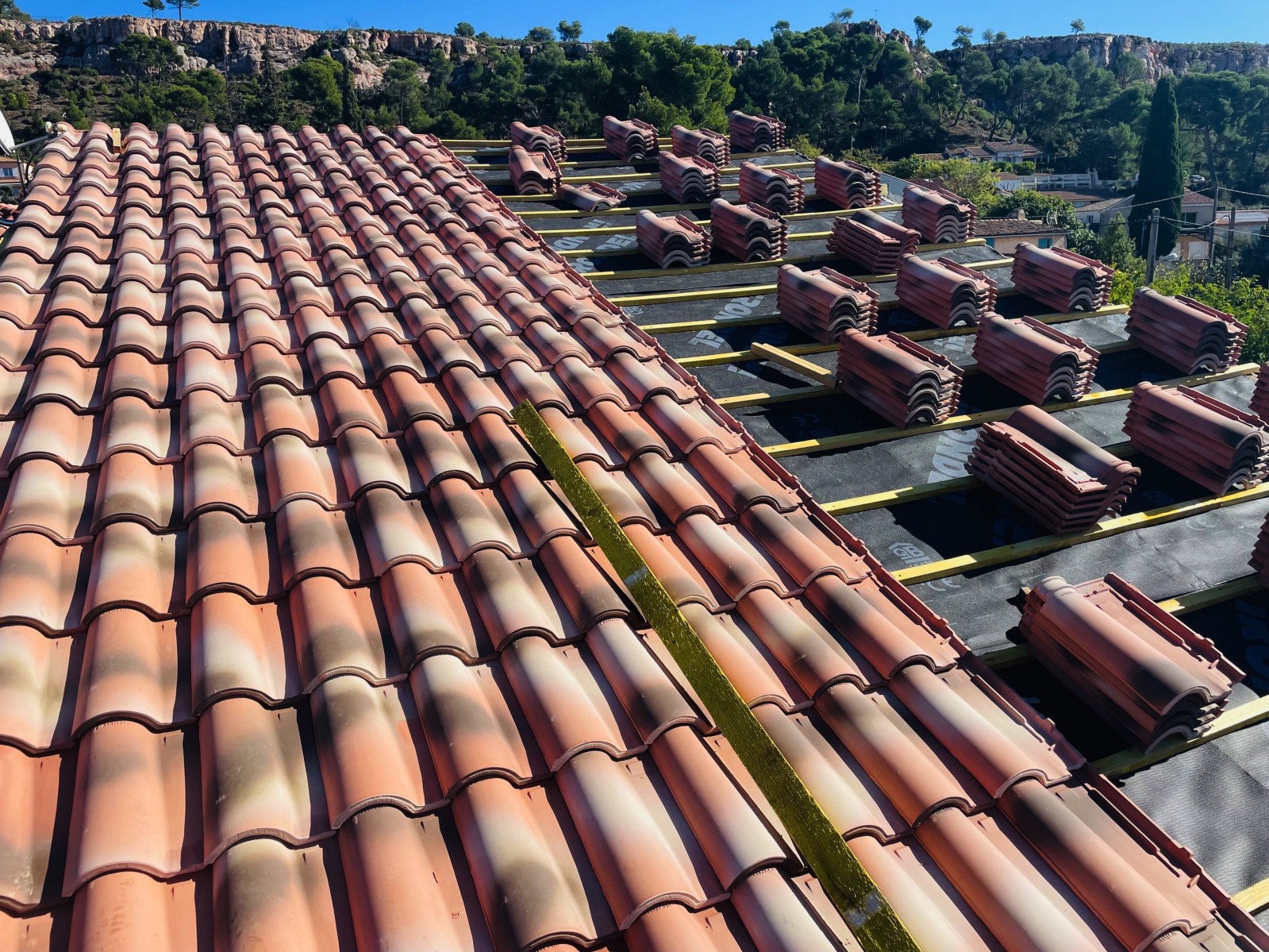 Ce chantier sur Vitrolles réalisé par notre équipe de couvreurs aura duré 10 jours avec la pose de quelques chevrons neufs en renfort.