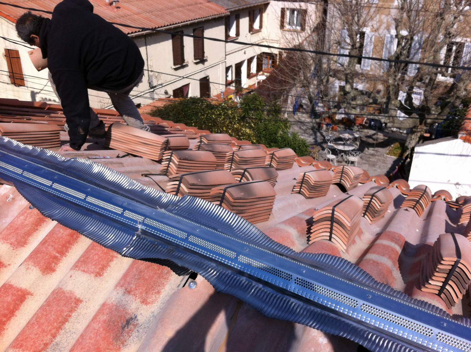 installation des liteaux et des tuiles canal ou mécaniques,