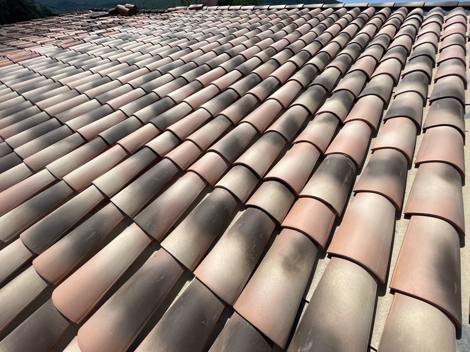 Cette intervention des couvreurs Solutoiture se porte ici sur le changement des tuiles qui compose la toiture par une toiture de type P.S.T (Plaque sous Toiture) avec tuile Canal Silvacane en Finition.