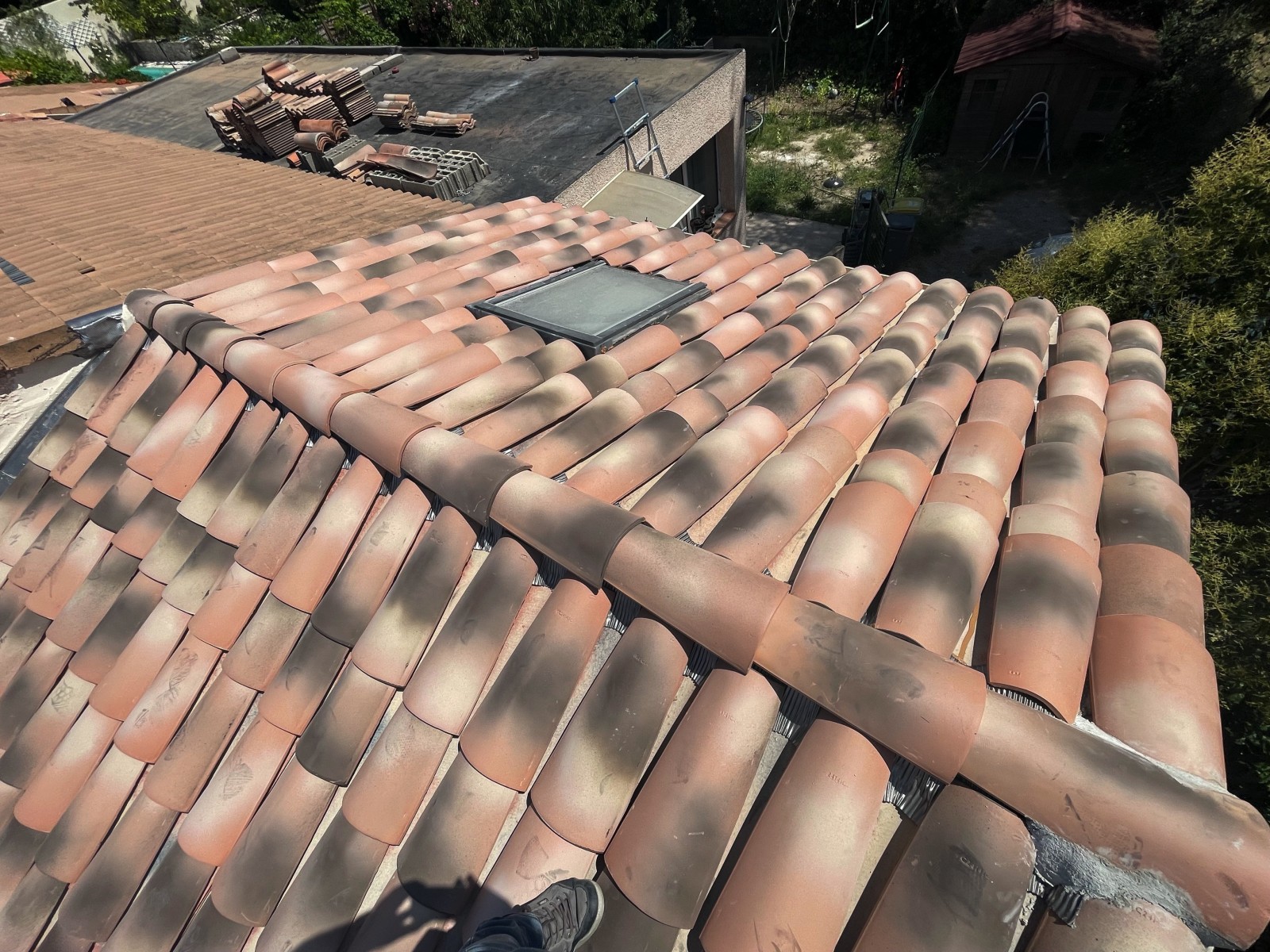 Cette intervention des couvreurs Solutoiture se porte ici sur le changement des tuiles qui compose la toiture par une toiture de type P.S.T (Plaque sous Toiture) avec tuile Canal Silvacane en Finition.