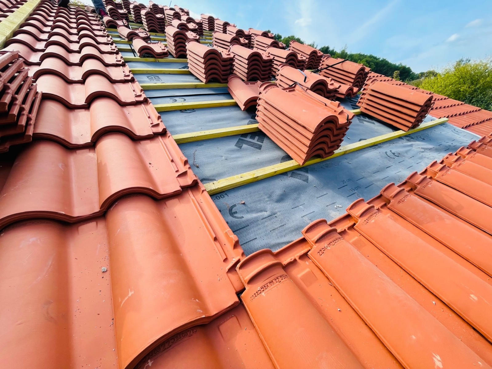 La toiture ici est en tuiles mécaniques de type Romane et serra remplacée à l’identique.