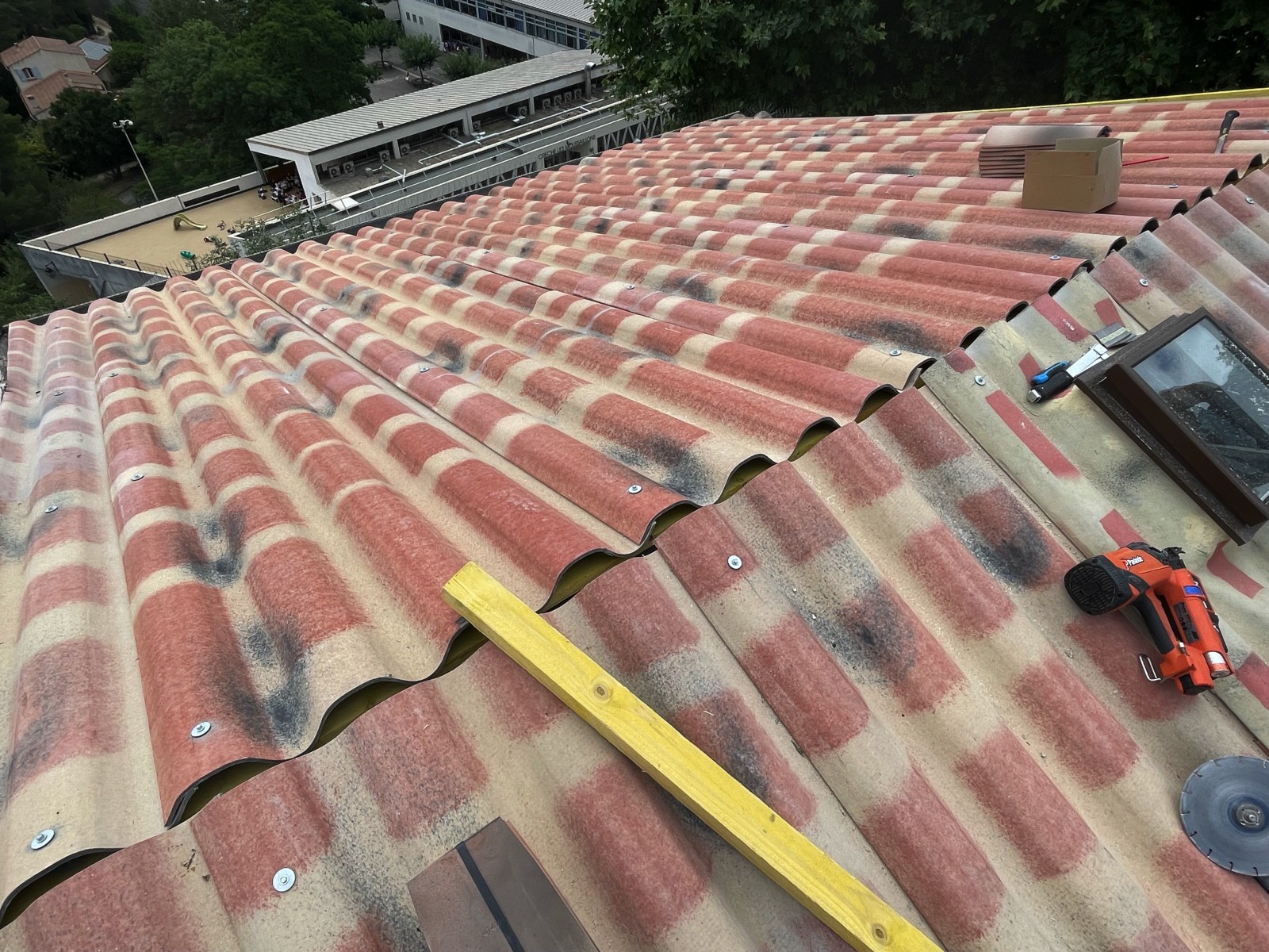Ce changement de toiture est consécutif à de multiples fuites sur une toiture devenu non réparable.