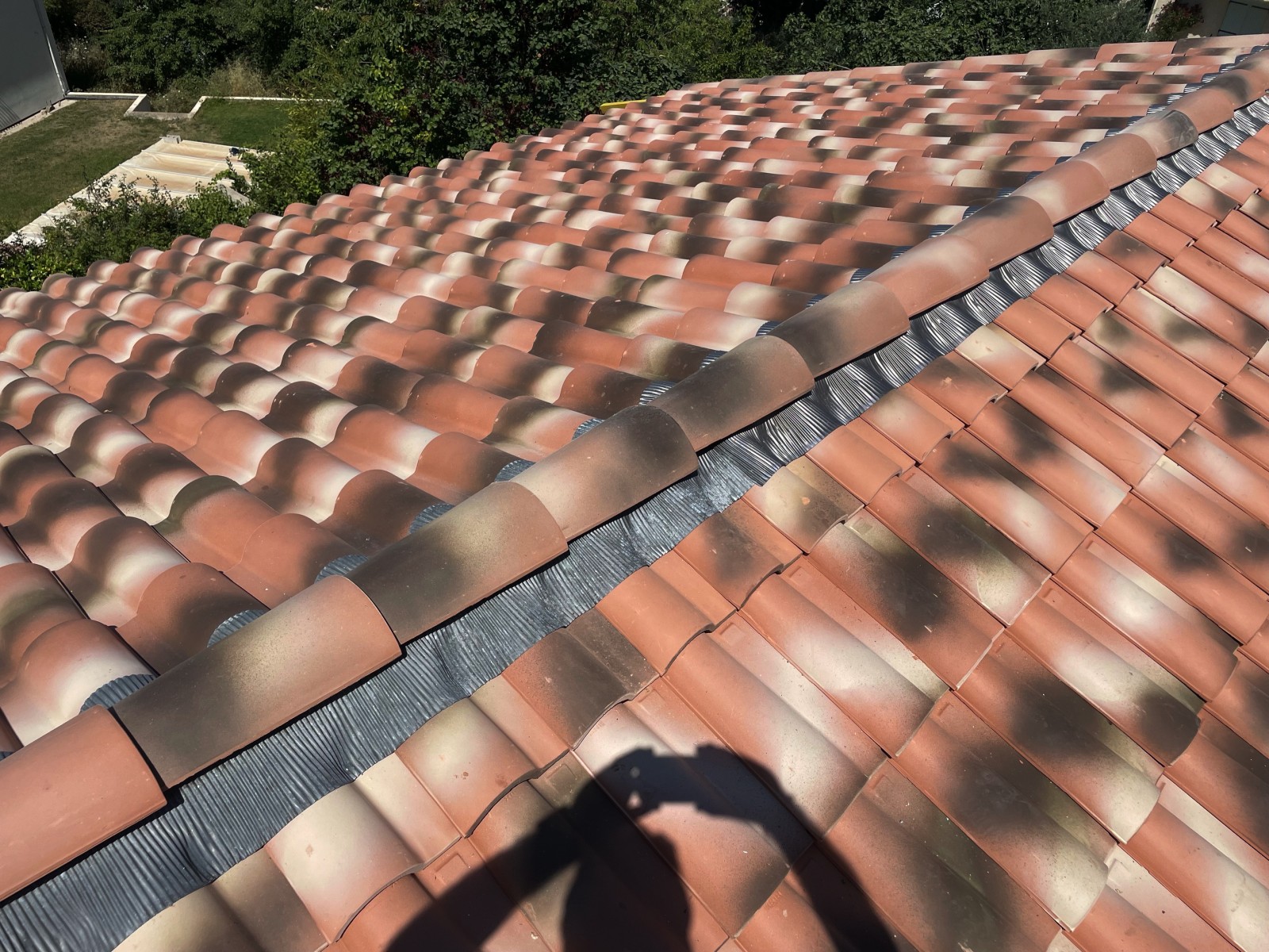 Ici nous avons également changé le Faîtage et effectué un nettoyage avec traitement hydrofuge d'une partie de toiture de la maison.