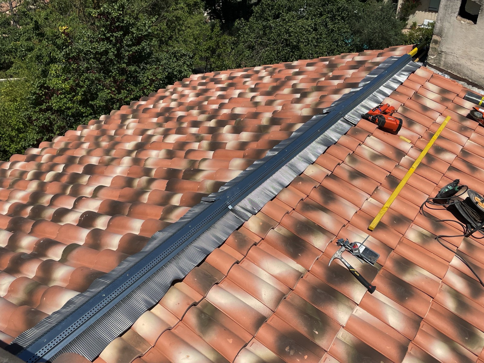 Le propriétaire a choisi de faire confiance aux équipes de couvreurs Solutoiture pour la réfection de celle-ci avec la pose de tuiles mécaniques romane Silvacane à neuf .