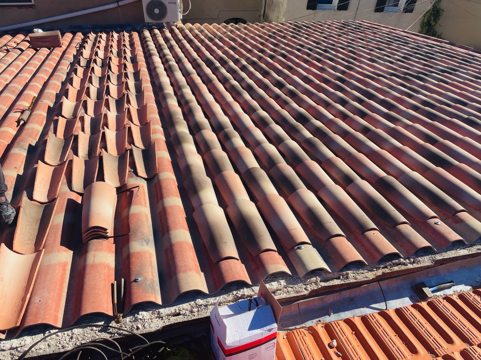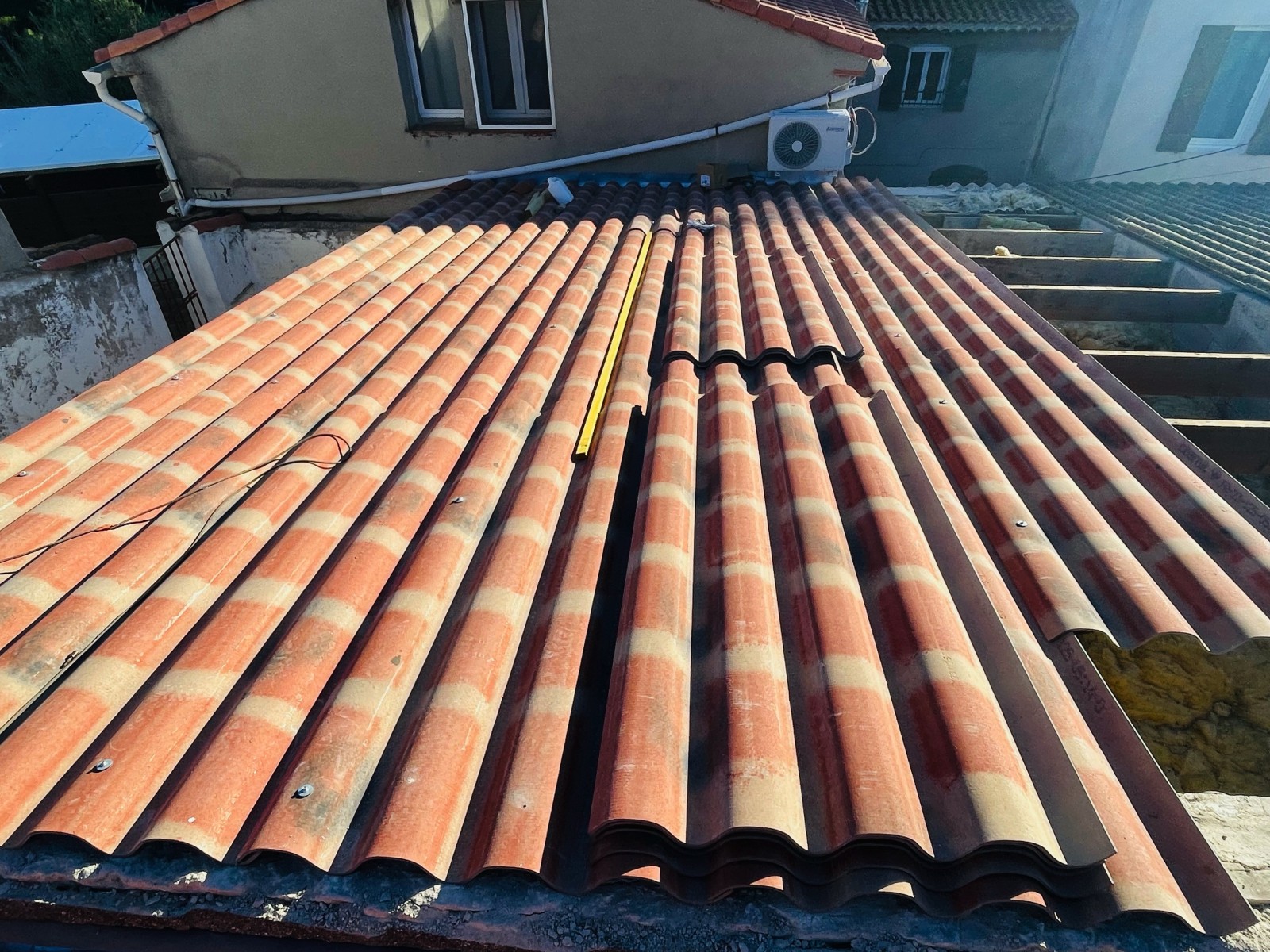 Les techniciens couvreurs de Solutoiture sont intervenus ici sur un changement de toiture de type P.S.T (plaques sous toiture) avec tuiles Canal sur Châteauneuf-les-Martigues 13220 près de Marignane.