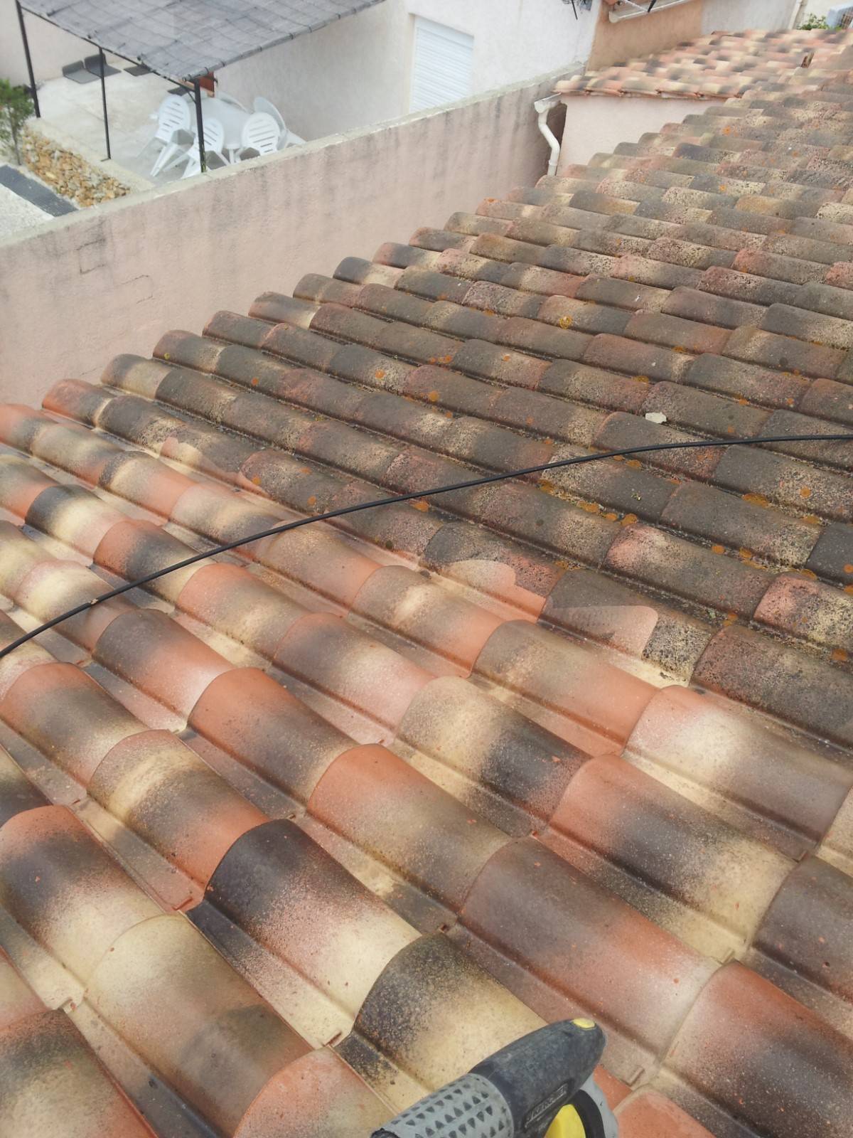 Le propriétaire nous à consulté car il avait des tuiles encrassées et surtout chargées en mousse sur toute sa toiture.