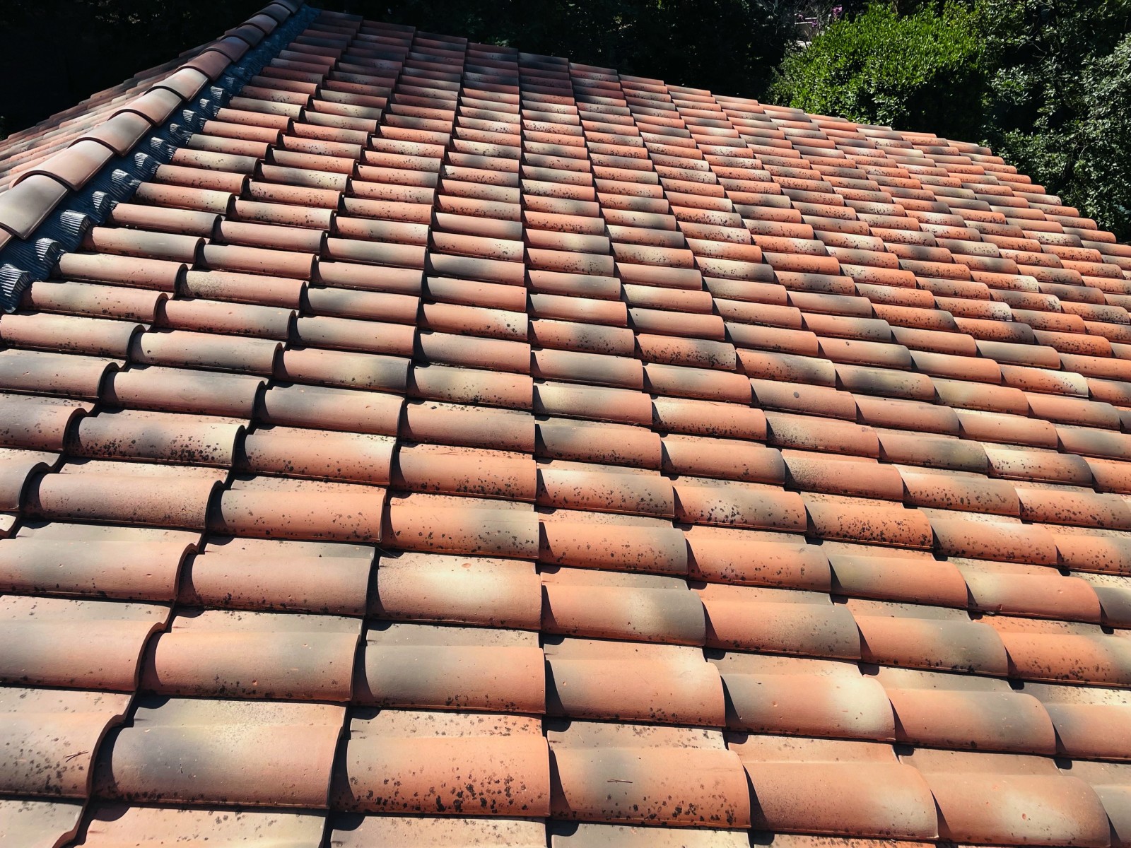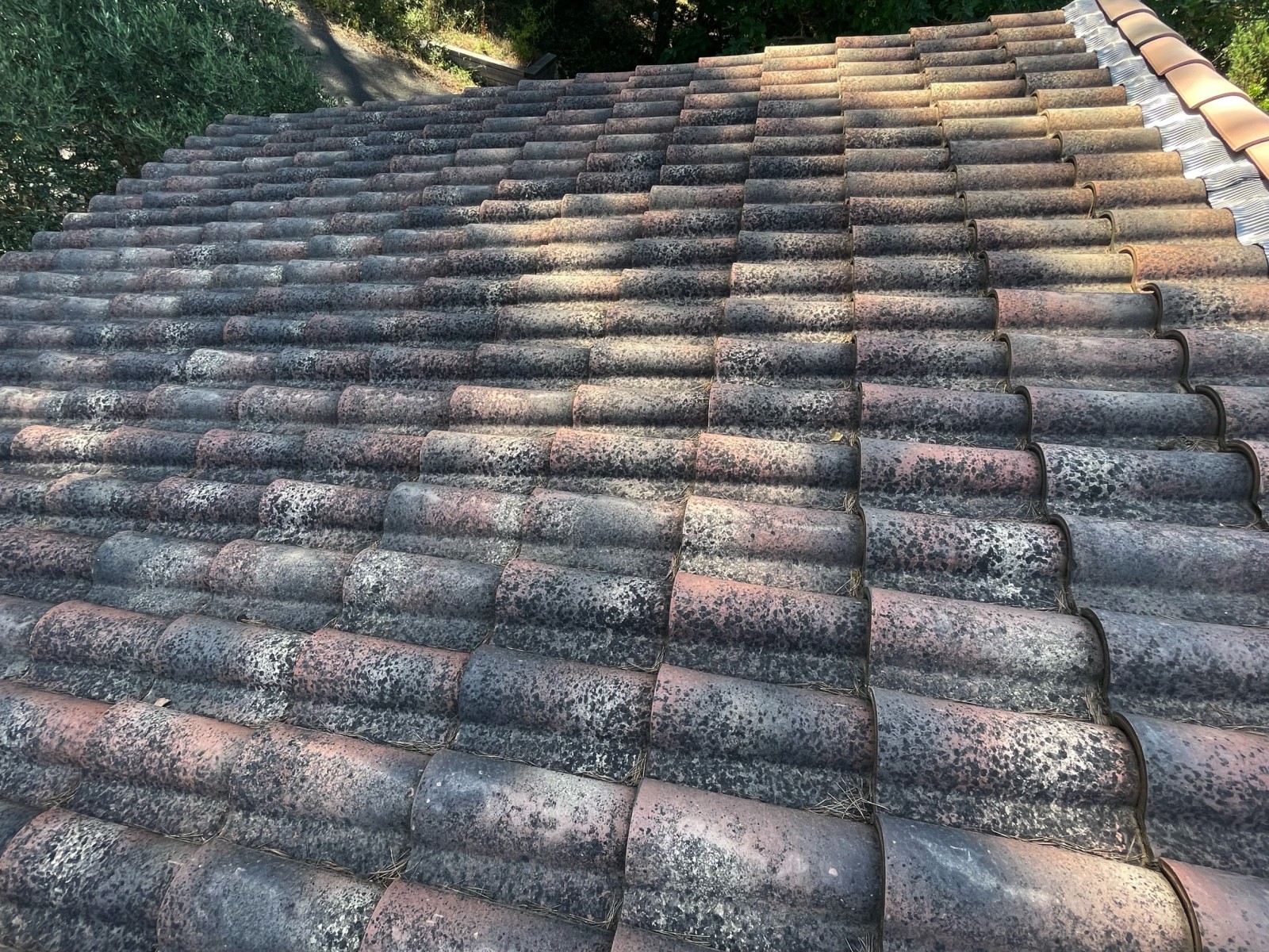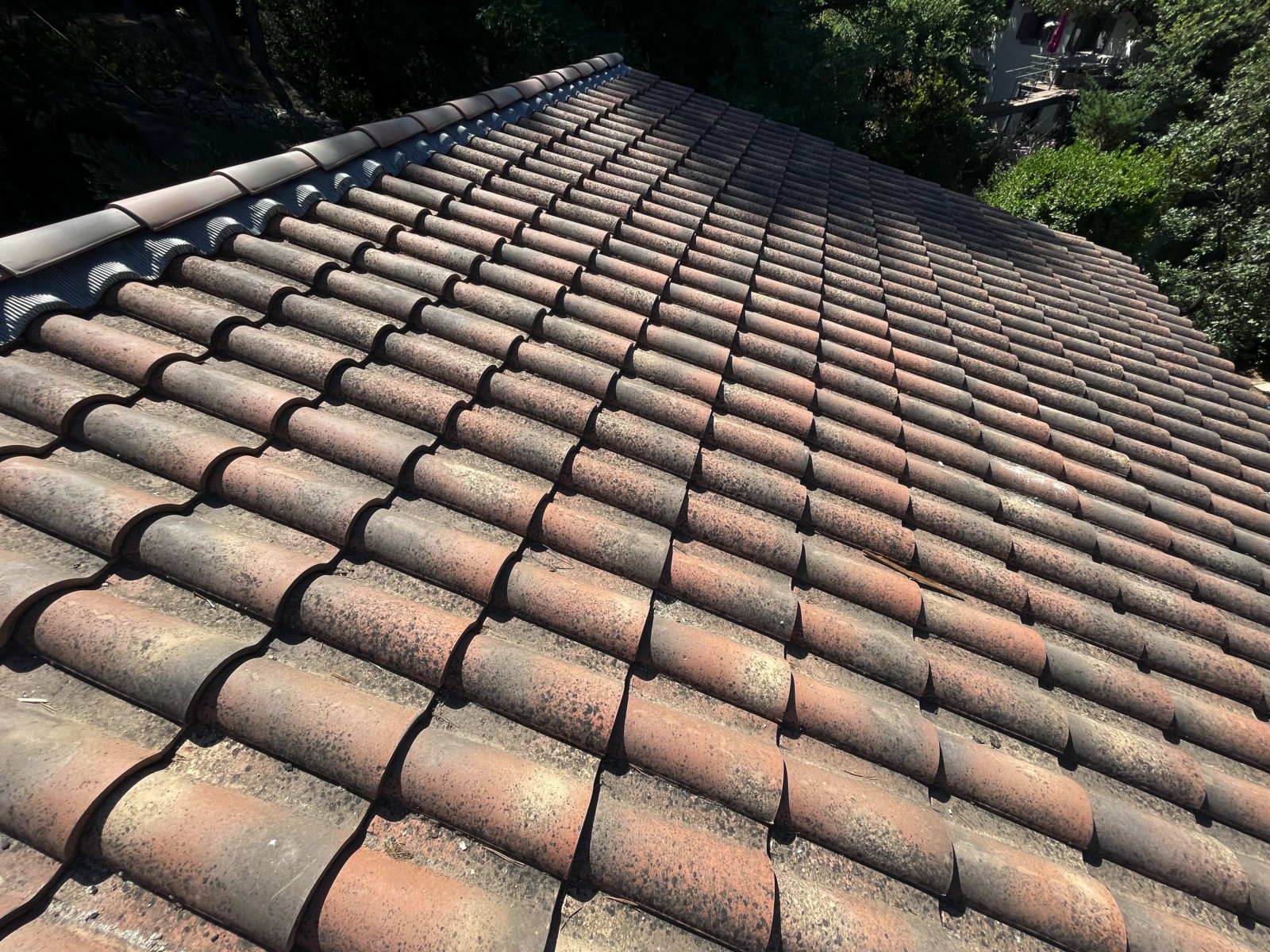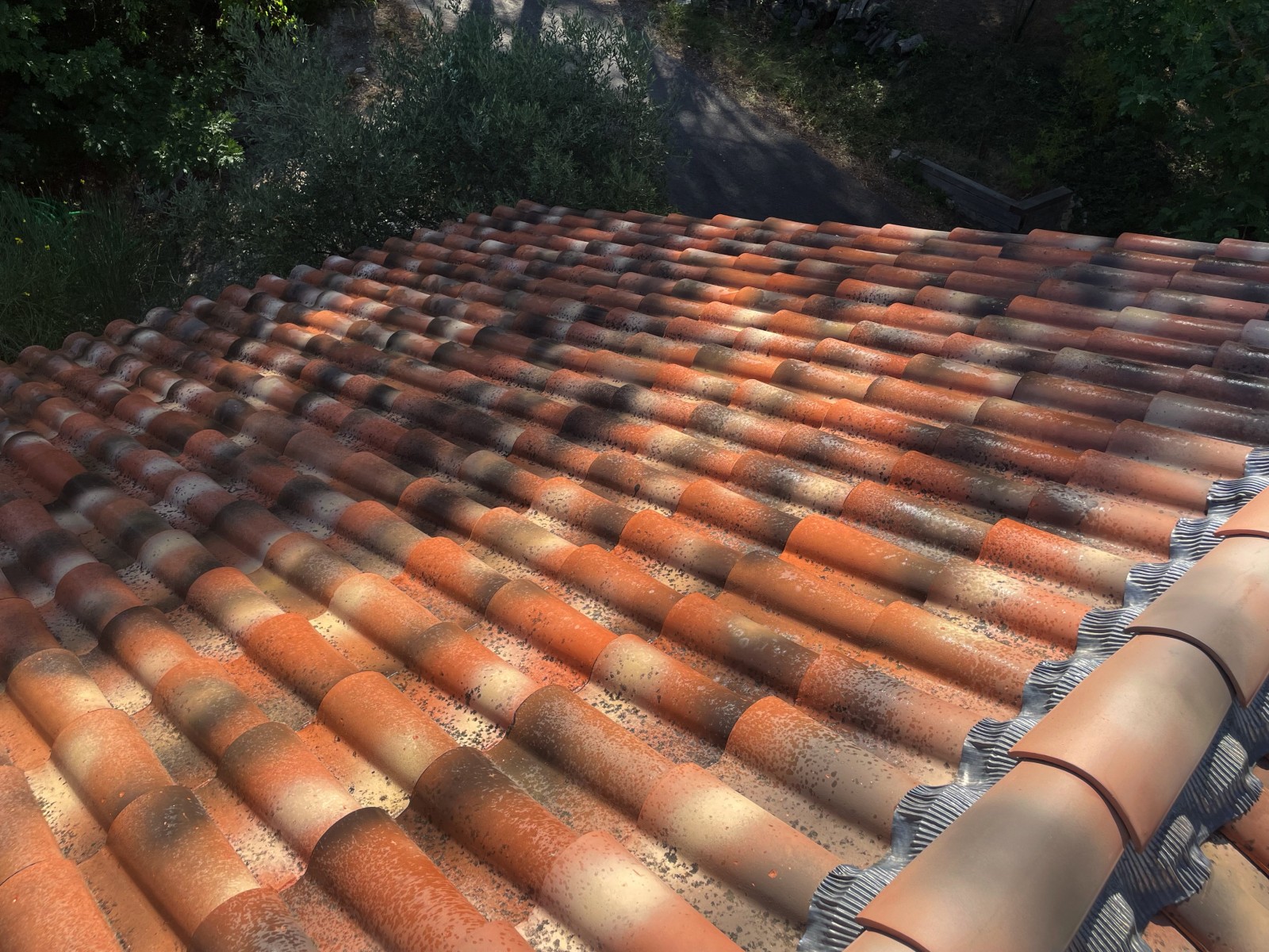 Le propriétaire nous à consulté car il avait des tuiles encrassées et chargée en mousse sur toute sa toiture.