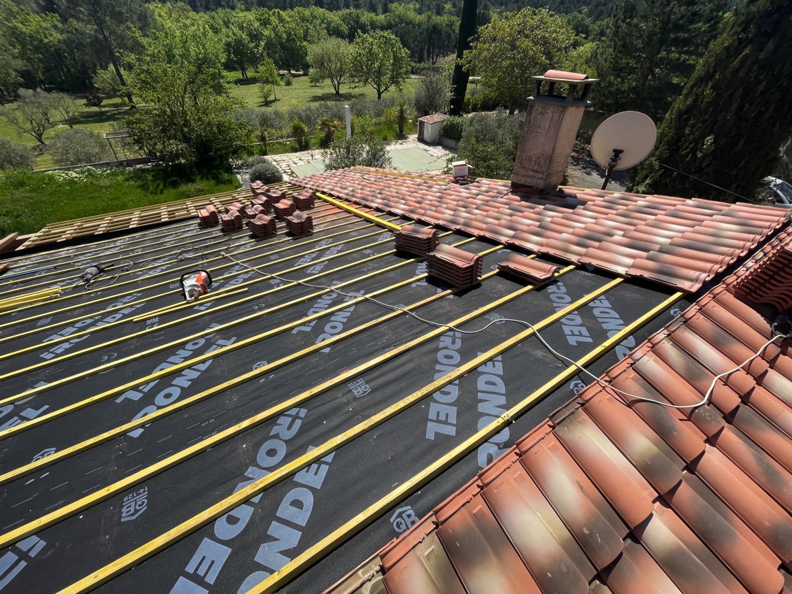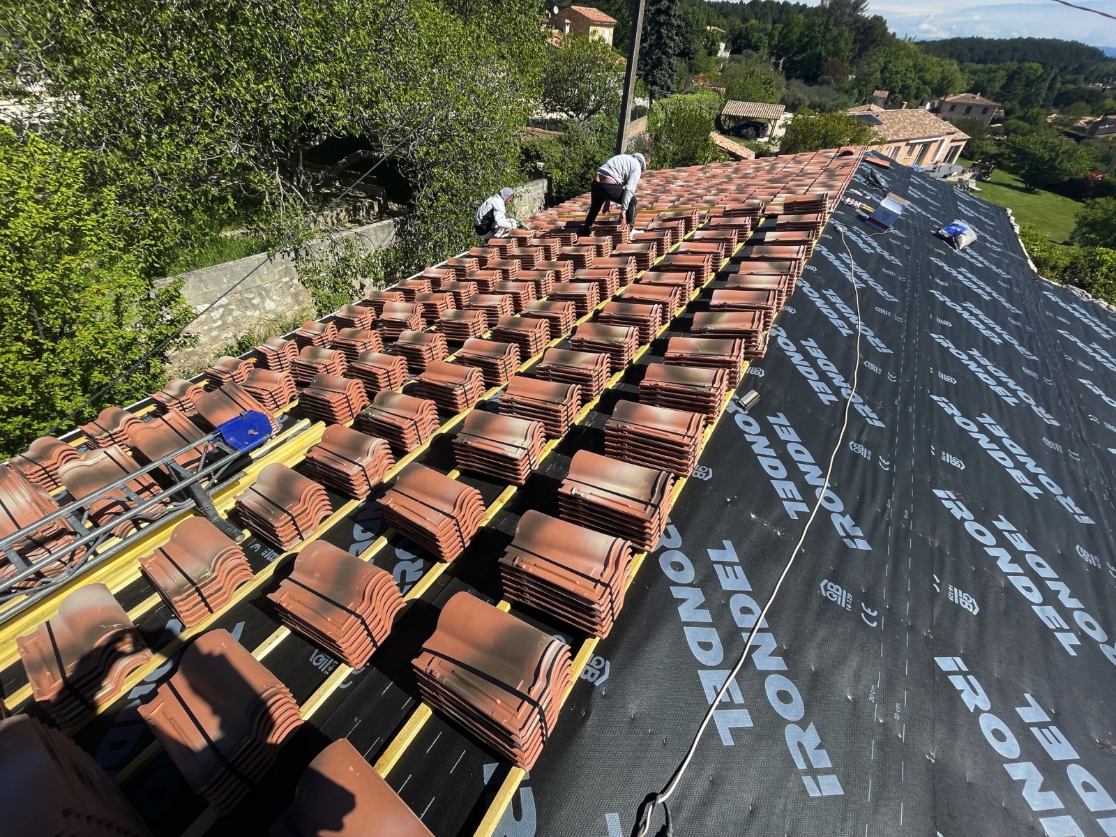 Solutoiture vous présente ici une intervention de nos techniciens couvreurs pour un changement de toiture type mécanique Romane près d’Aix-en-Provence 13100.