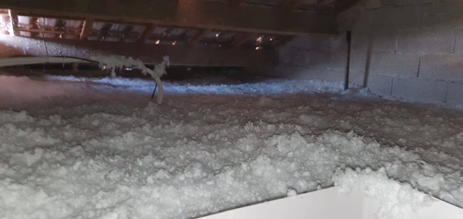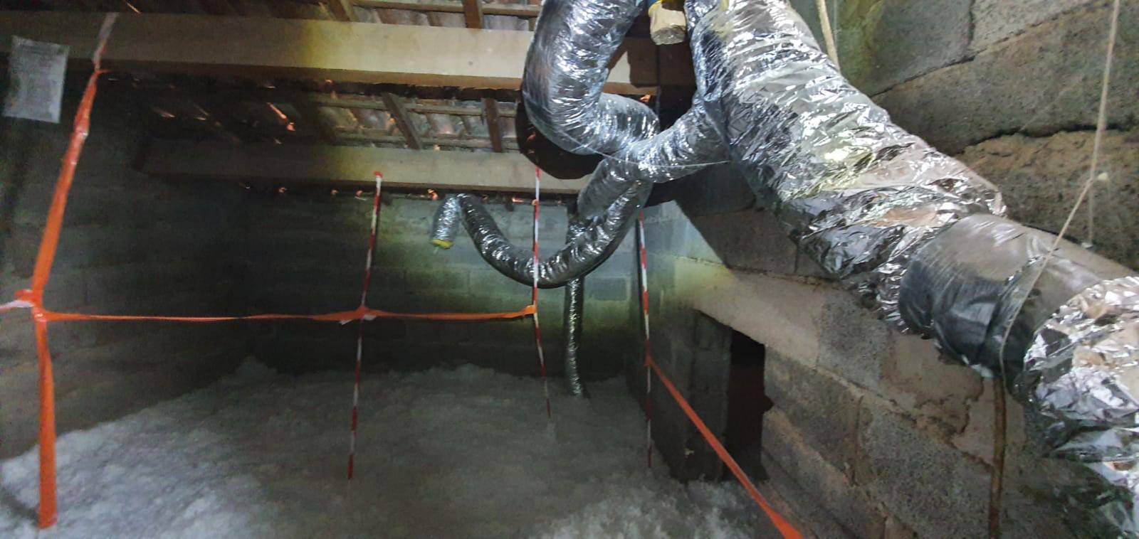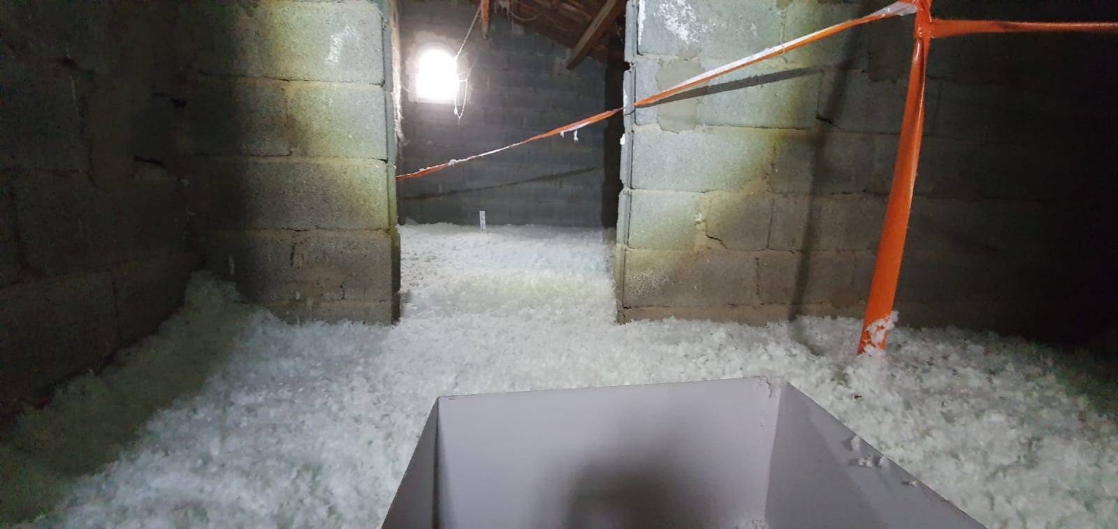 Découvrez ici une isolation des combles perdus en Laine de Verre par soufflage Mécanique.