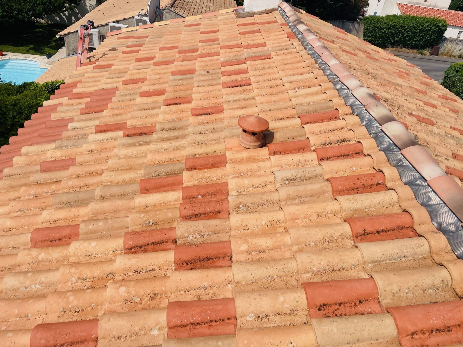 Le propriétaire nous a contacté nos couvreurs Solutoiture car il souhaitait nettoyer sa toiture qui était très sale.
