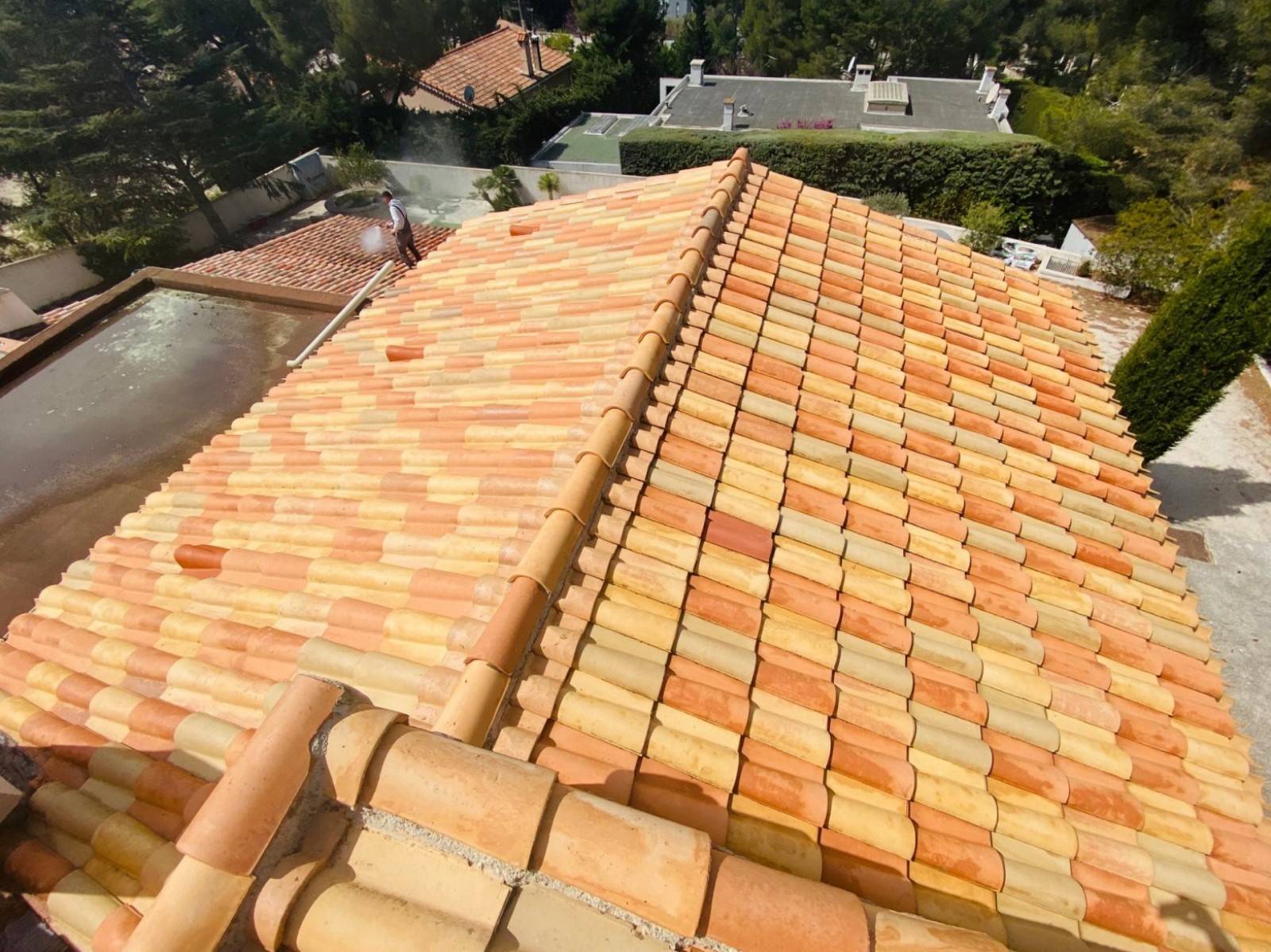 Solutoiture, votre partenaire en rénovation et entretien de toiture vous présente ici un nettoyage et traitement d’une toiture de maison sur Carry-le-Rouet 13620 proche de Marignane.
