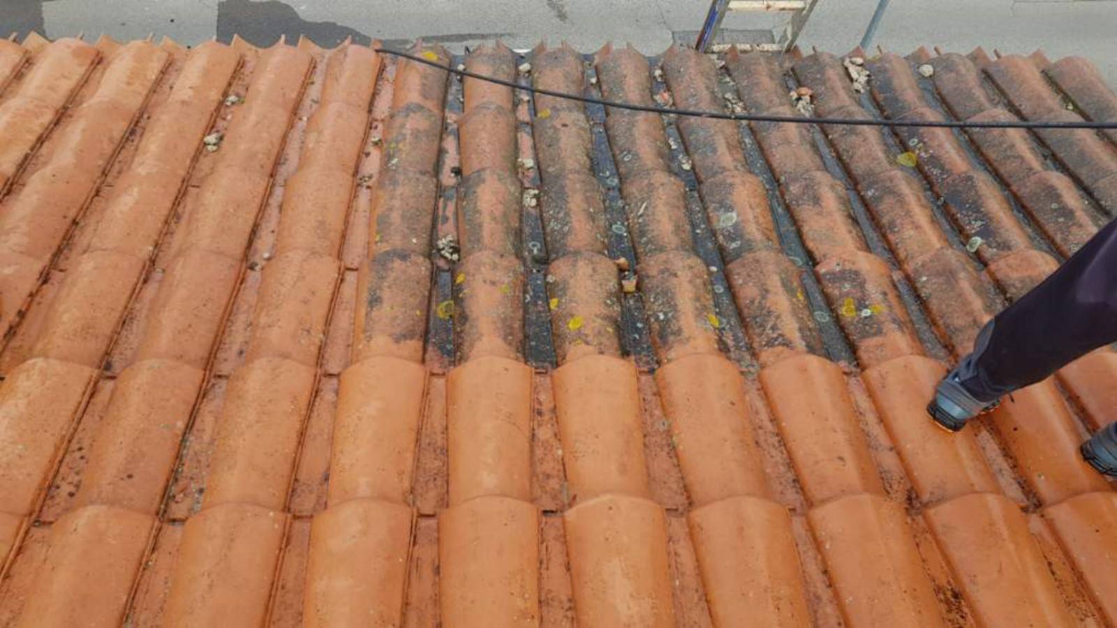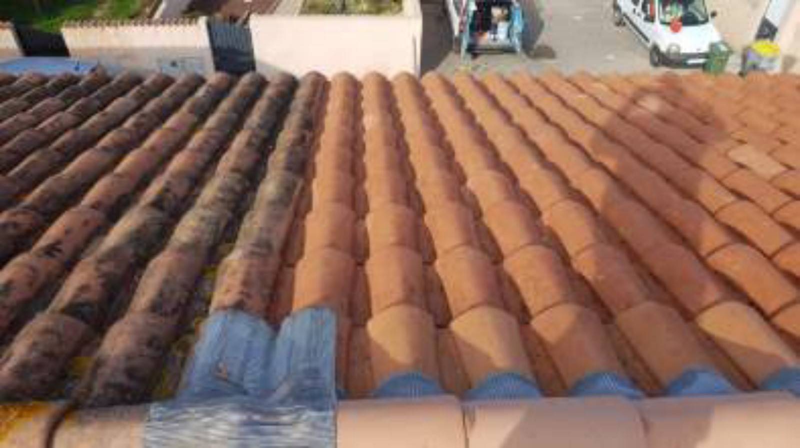 nettoyage et traitement sur des tuiles romane.