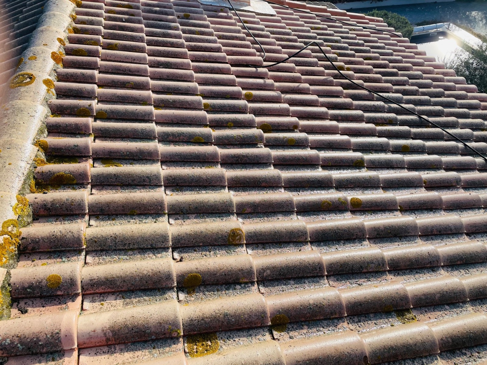 Nous avons donc ici réalisé un changement de la rive et des tuiles cassées ainsi que le nettoyage complet de la toiture.