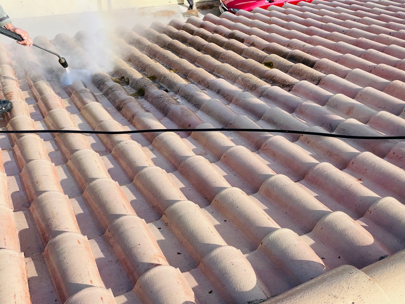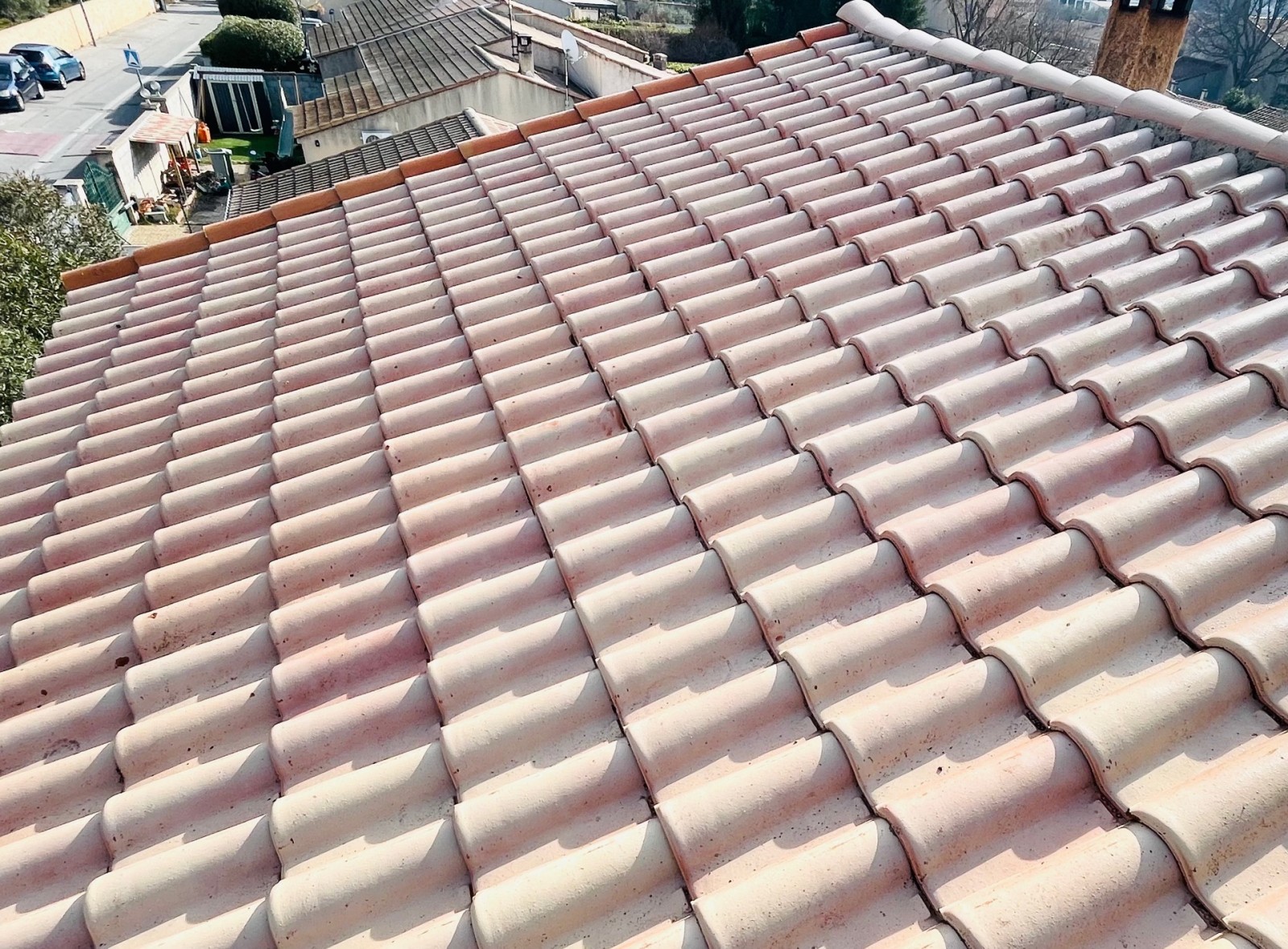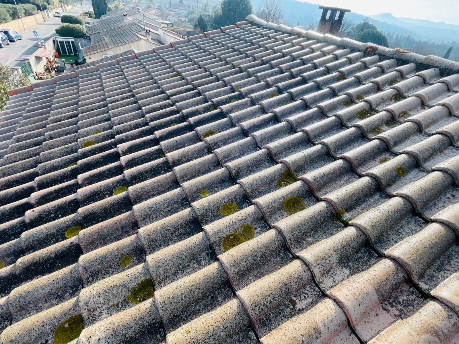 Solutoiture, votre partenaire en rénovation et nettoyage de toiture, vous présente ici une intervention de traitement de tuiles sur Coudoux 13111.
