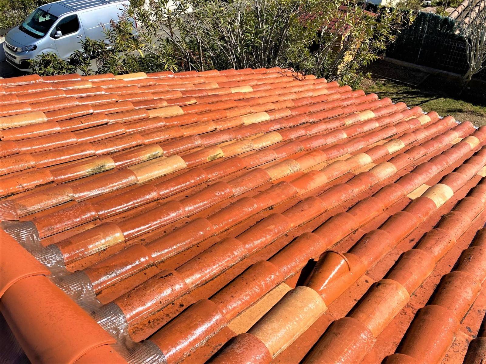 Solutoiture, votre partenaire en entretien de toiture et rénovation de toiture vous présente ici un nettoyage et traitement hydrofuge d’une toiture de maison sur Velaux 13880 proche de Marignane.