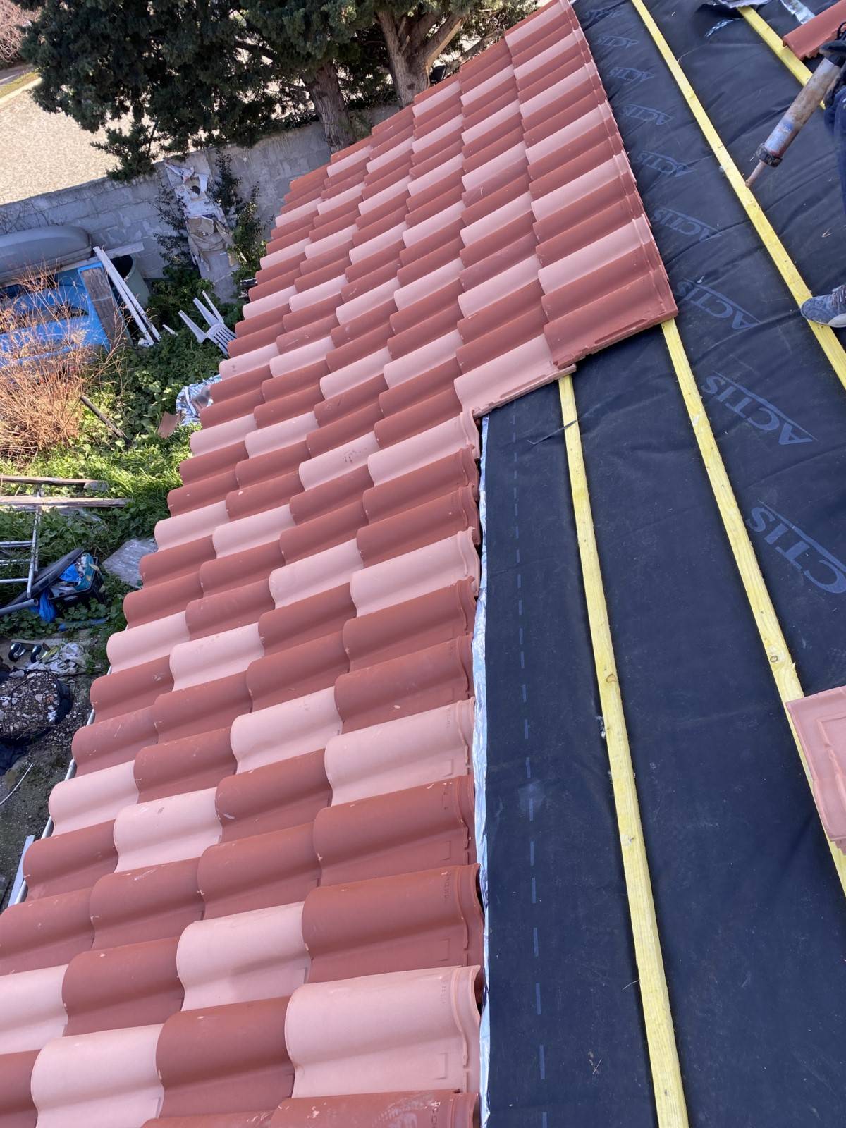 installation des liteaux et des tuiles mécaniques ou romanes,