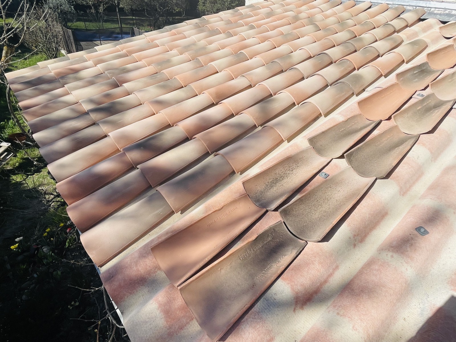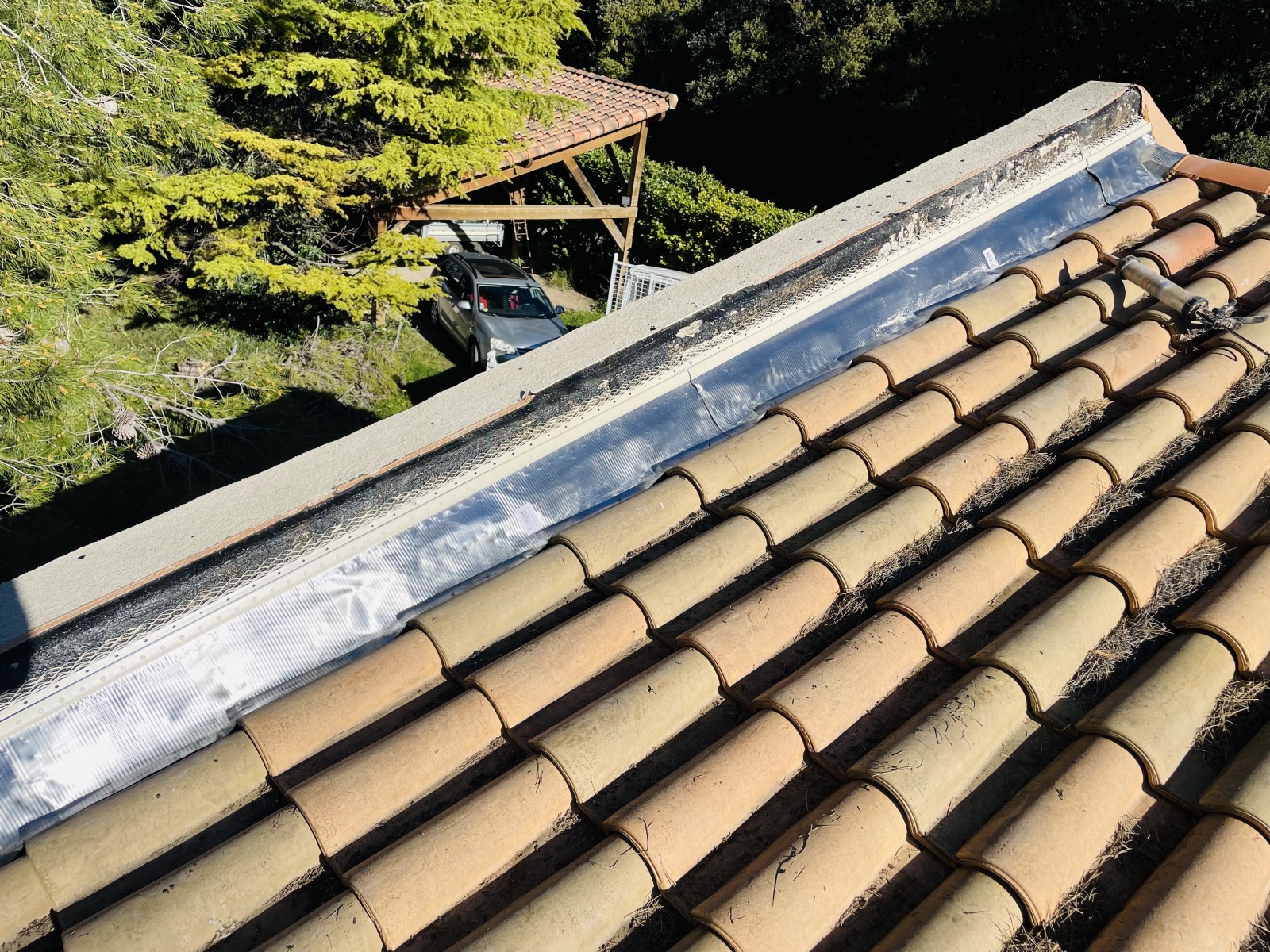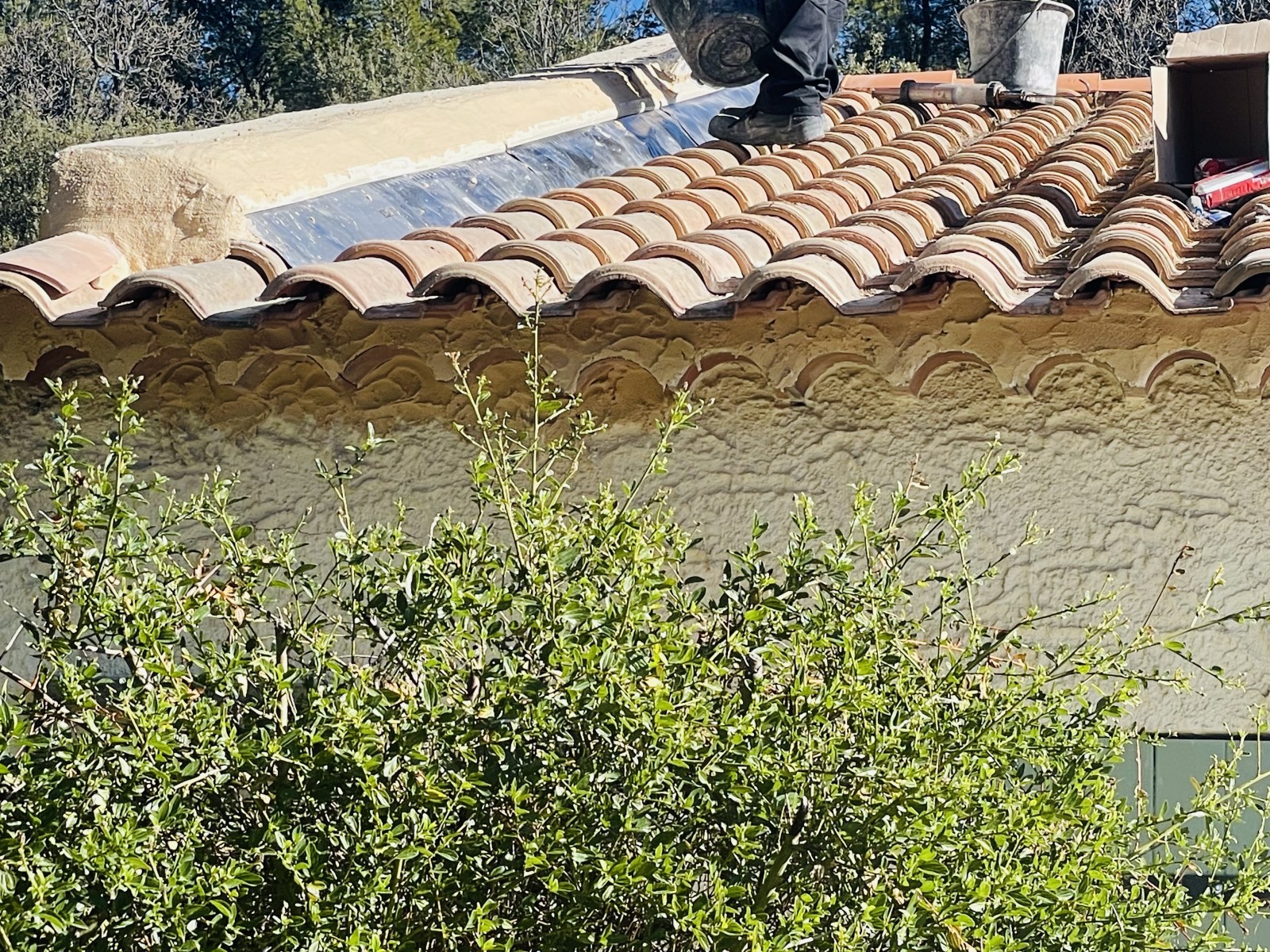 Ici l'intervention consiste à refaire une partie de Génoise, un Solin et la pose de P.S.T avec tuiles Canal Sylvacane.