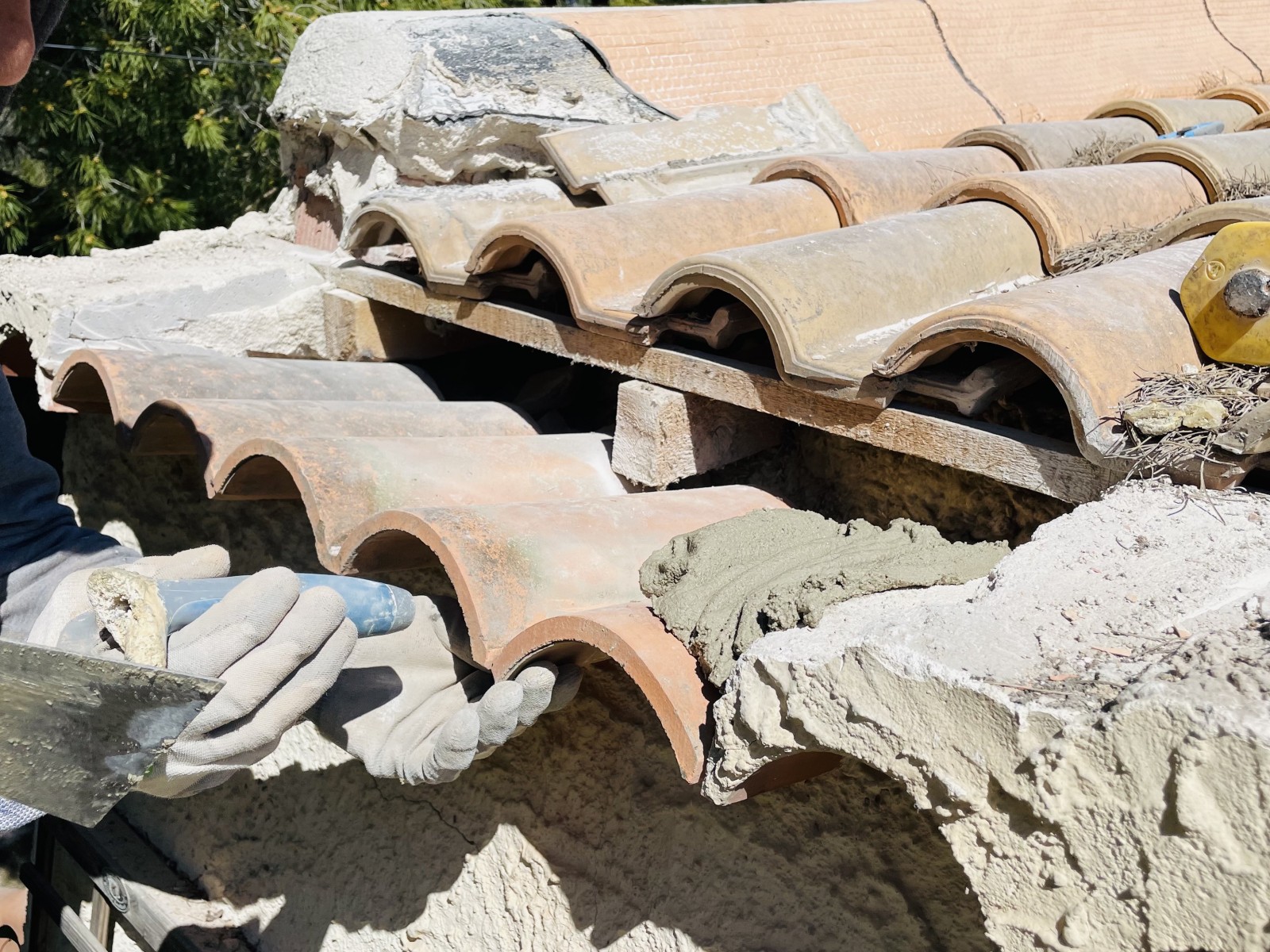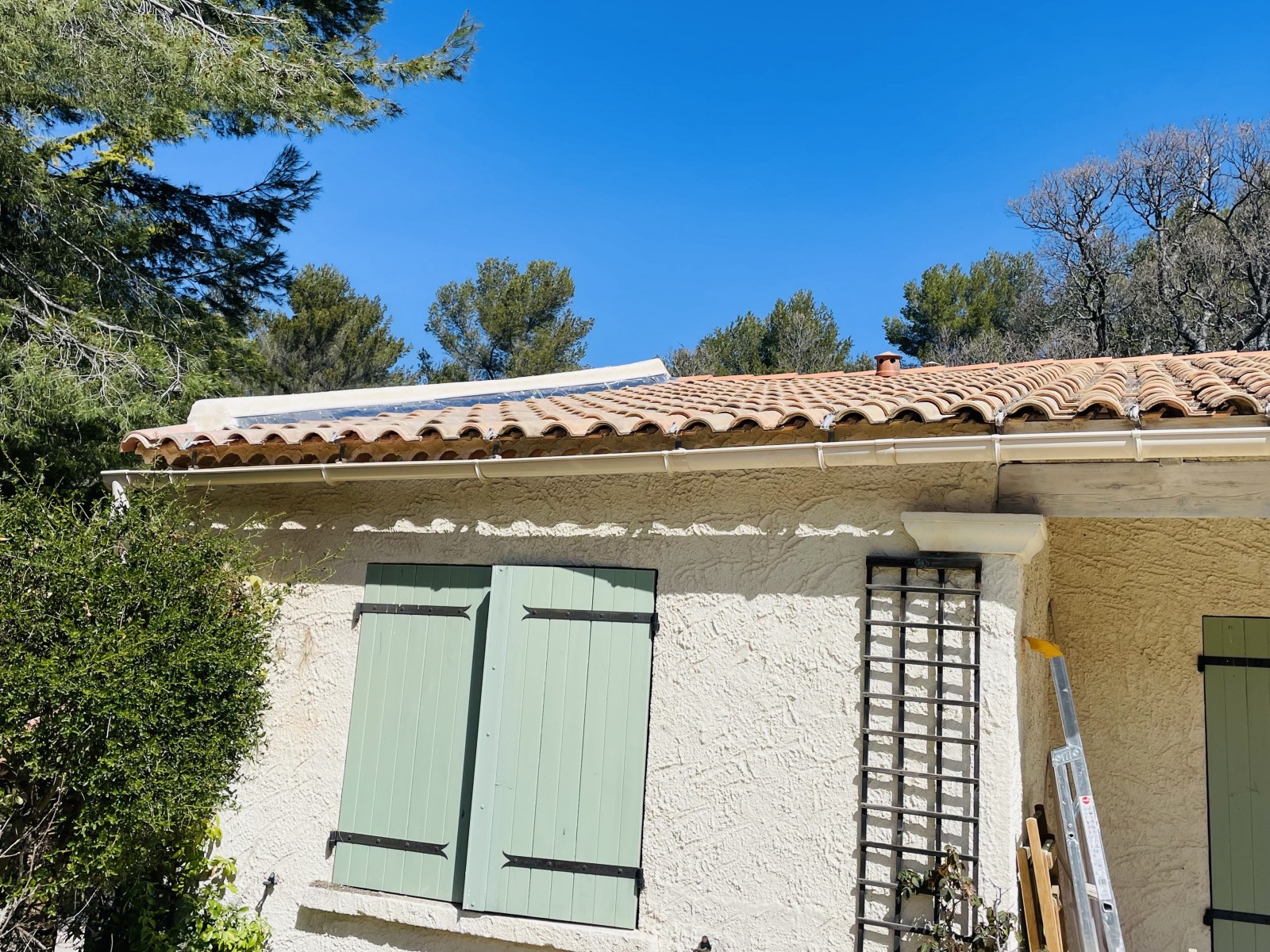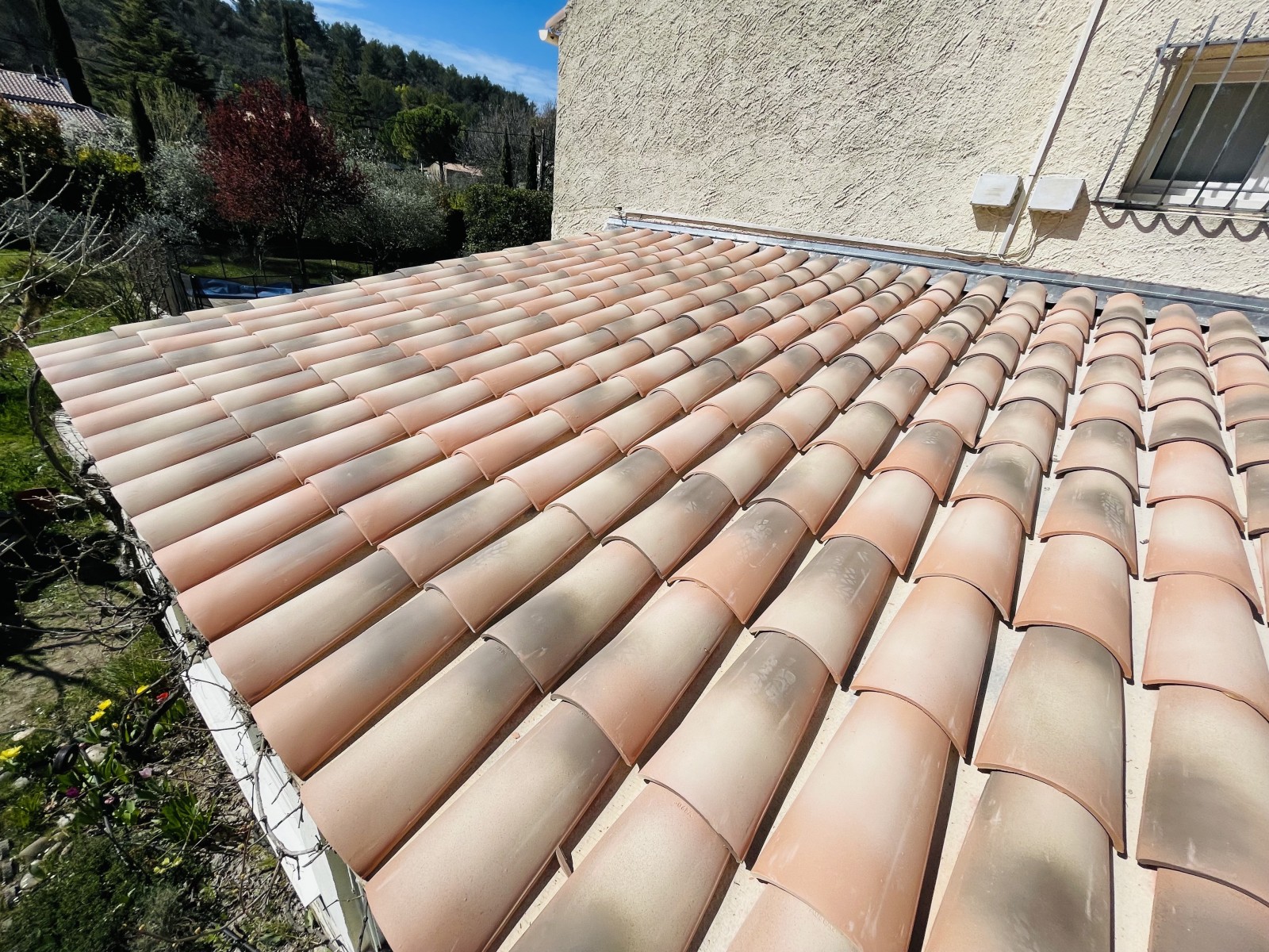 Ici l'intervention consiste à refaire une partie de Génoise, un Solin et la pose de P.S.T avec tuiles Canal Sylvacane.
