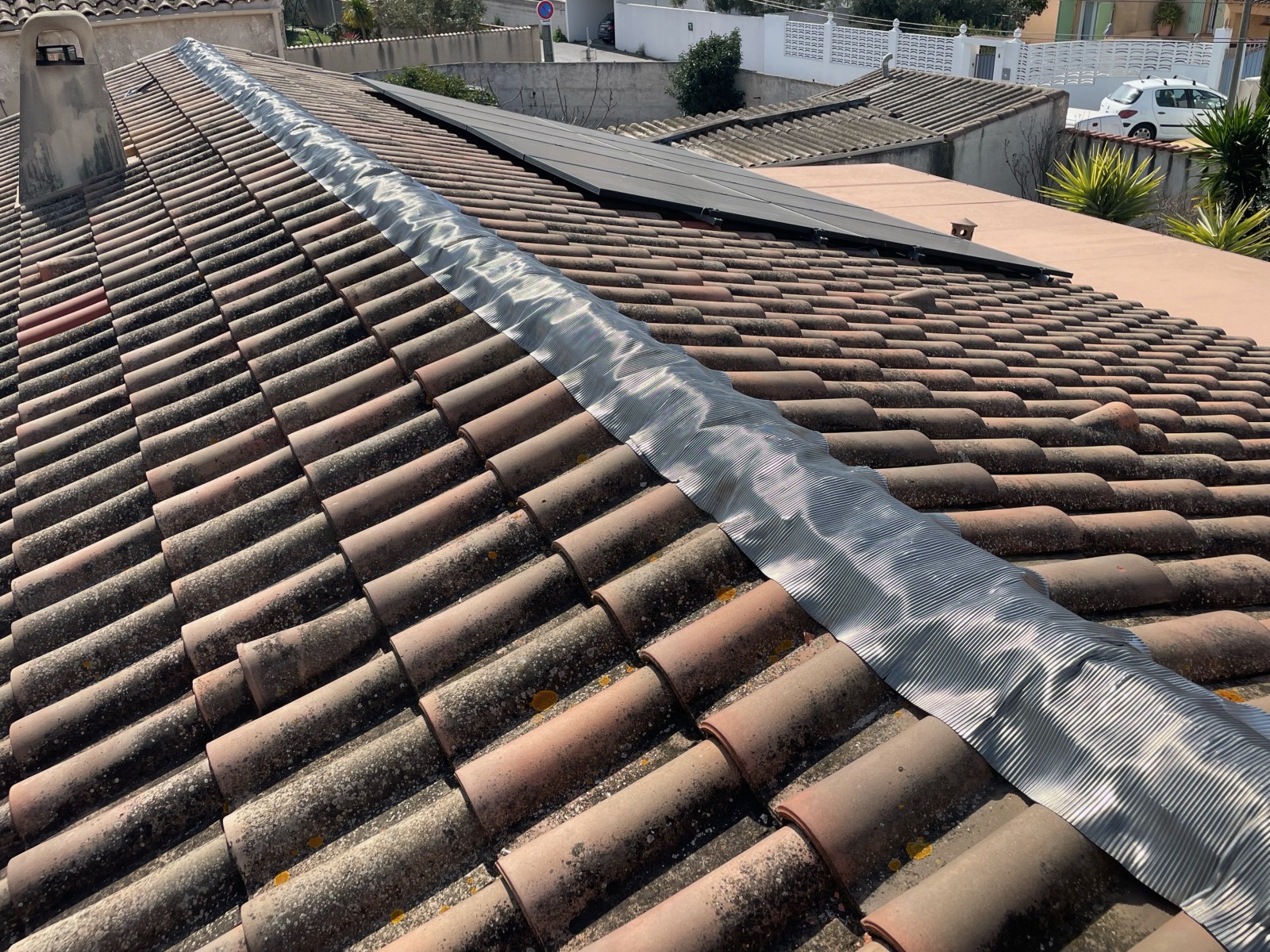 Ce projet de rénovation de Faîtage sur Marignane 13700 a été réalisé en une journée par l'équipes de techniciens couvreurs Solutoiture.
