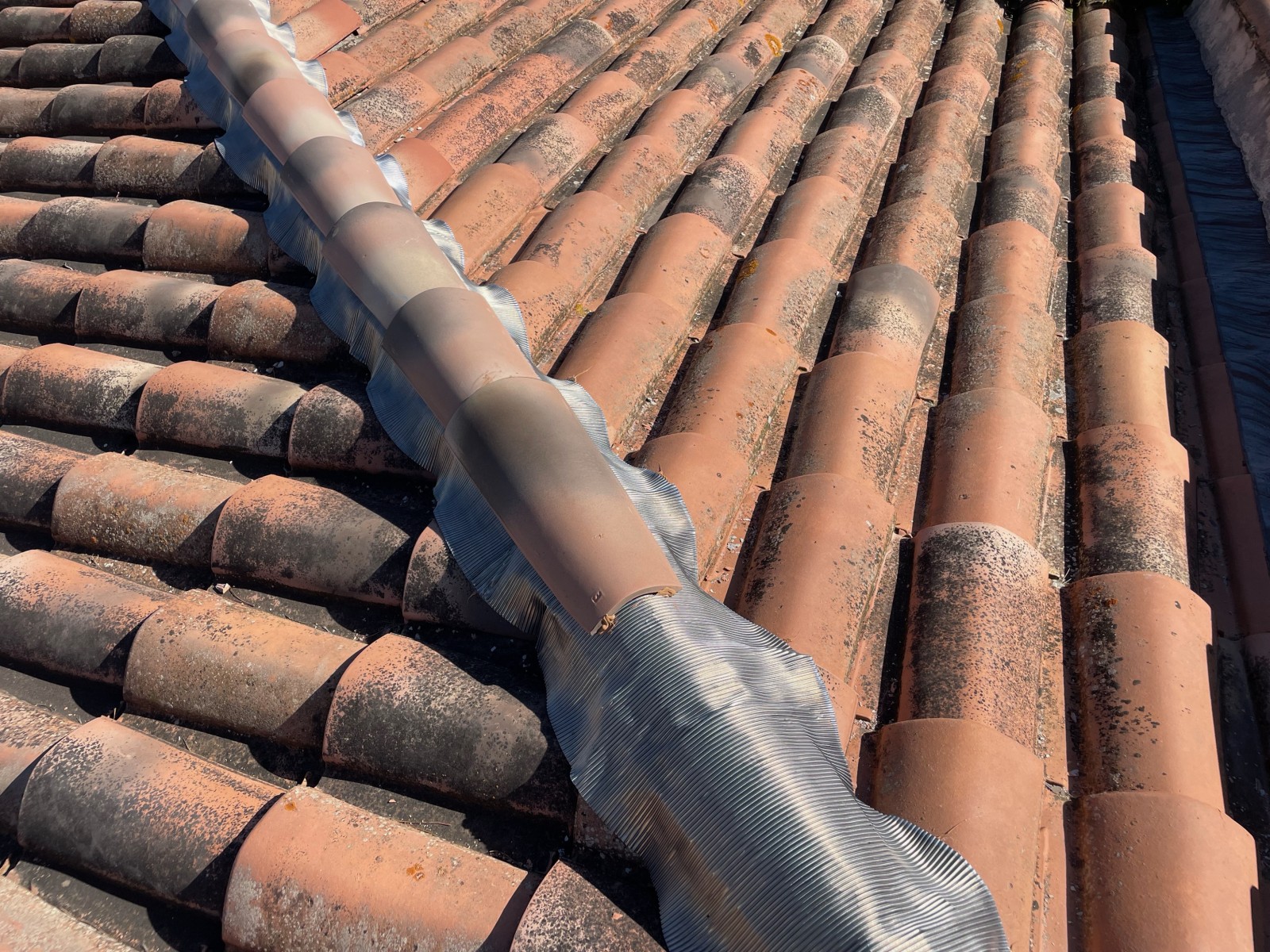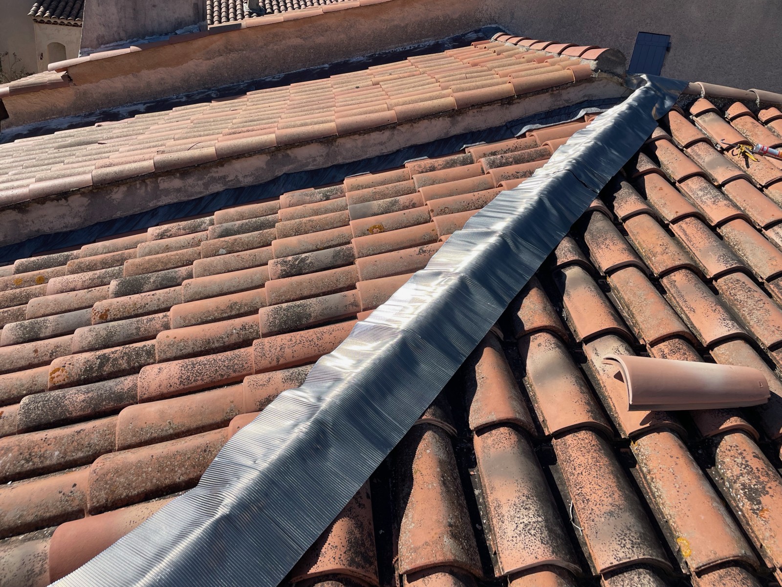 Ce type d'installation de plomb avec la pose de tuile canal collé permet une meilleure durée de vie.