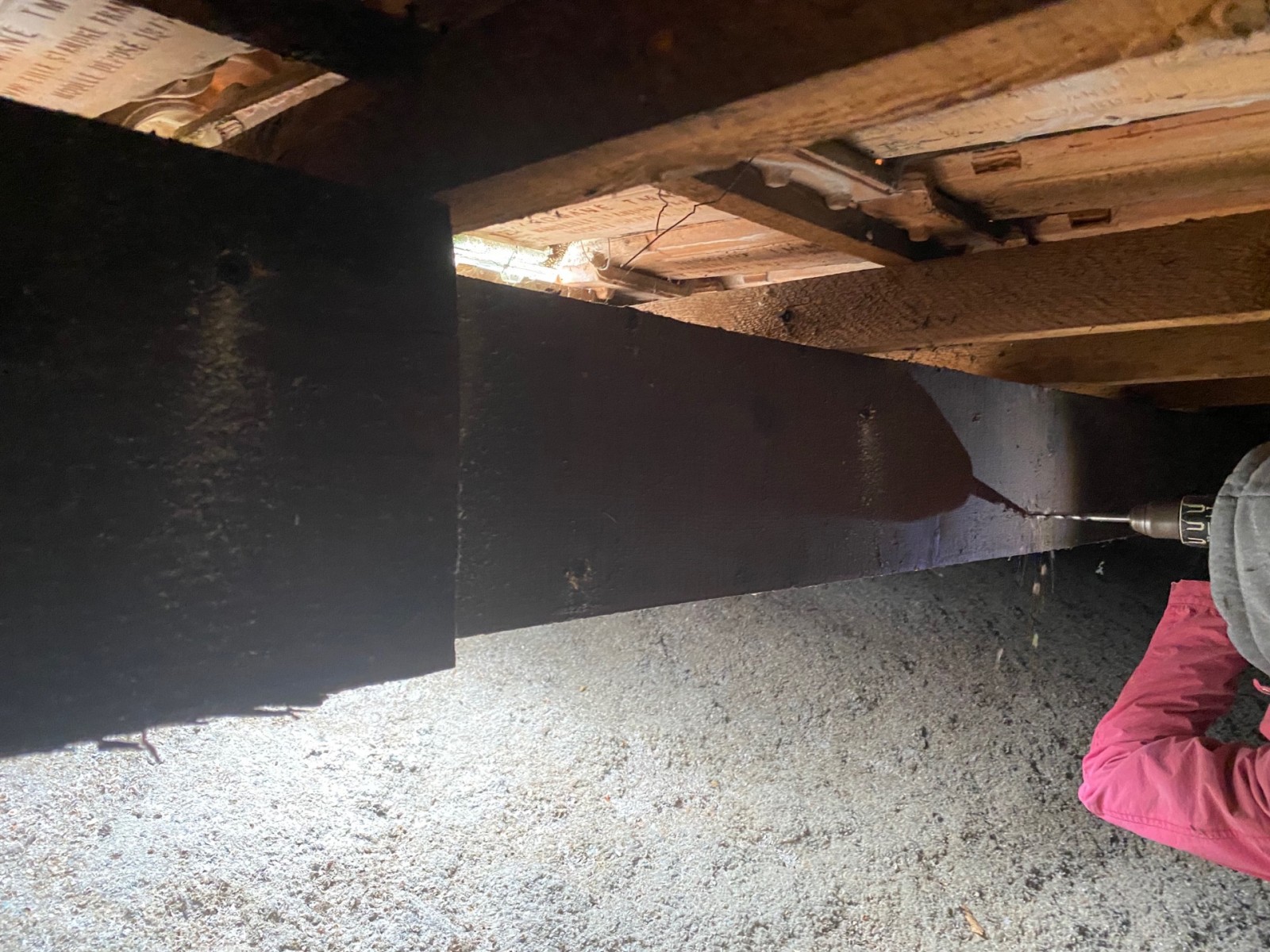 Double pulvérisation des poutres, chevrons et liteaux.